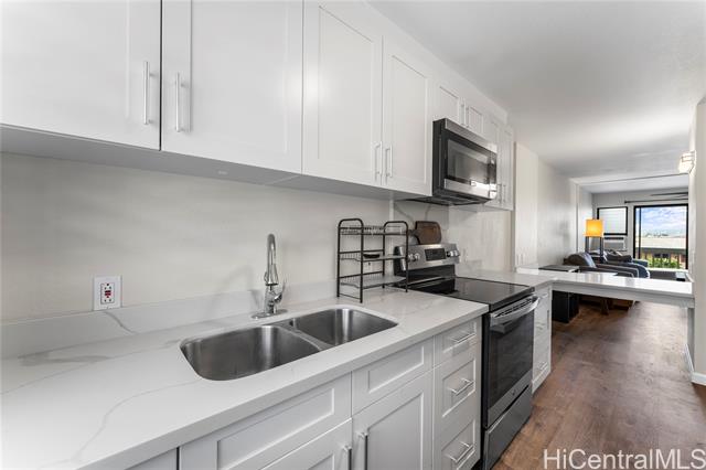 - Welcome to Pearl Horizons, a highly desirable, pet-friendly community in the heart of Aiea. This beautifully and fully remodeled 2-bedroom, 1.5-bath with a washer and dryer in unit features a spacious floor plan with stunning views of Pearl Harbor and the mountains. Enjoy a recently renovated kitchen with quartz countertops, new cabinetry, and stainless steel appliances, along with modernized bathrooms featuring sleek vanities and updated countertops. Pearl Horizons offers resort-style amenities including a swimming pool, whirlpool, sauna, BBQ area, clubhouse, resident manager, and security patrol. Ideally located near Pearlridge Center, Waimalu Plaza, schools, freeway access, bus lines, and the Skyline rail station, with close proximity to Joint Base Pearl Harbor-Hickam. A biking trail around Pearl Harbor is just minutes away. Experience the perfect balance of island living and urban convenience.