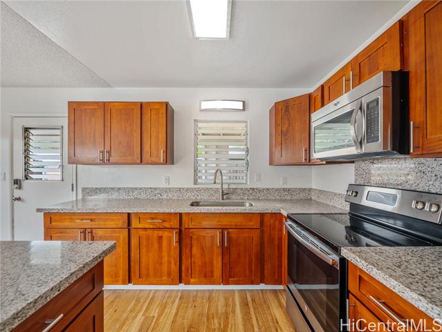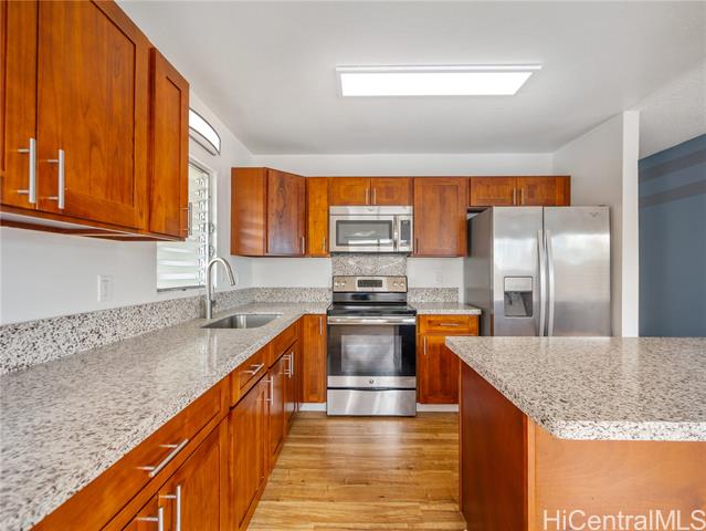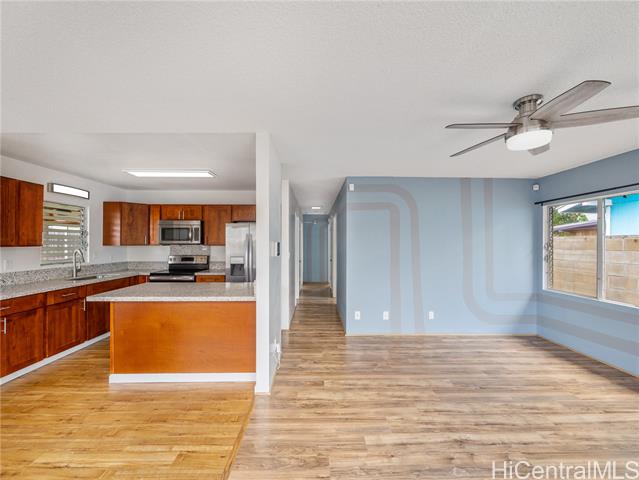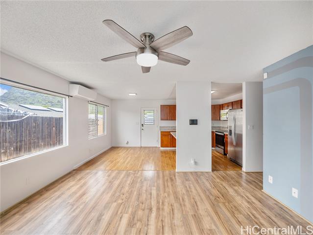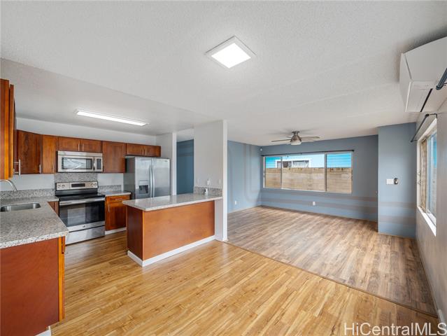 - Surfs Up! Don’t miss this outstanding opportunity to assume an exceptional 3.25% VA loan ($2,706.66/mo incl. PITI) with an approximate remaining balance of $506,746.35. This move-in-ready, single-level Waianae gem delivers comfort, convenience, and value with 3 bedrooms, 1.5 baths, a 1-car carport, and an oversized driveway offering ample parking for multiple vehicles, guests, or your weekend surf gear. The fully fenced, low-maintenance yard provides space for pets, keiki, gatherings, and privacy while keeping upkeep simple. Located just minutes from some of Hawai‘i’s best surf breaks, this home is perfect for those who love sun, waves, and coastal living. Upgrades include 21 owned PV panels (paid at closing) and 4 split A/C units for efficient, year-round cooling. The kitchen features quartz counters, wood cabinets, and stainless steel appliances, complemented by LVP flooring in main areas and carpet in two bedrooms for added comfort. A true standout value—don’t sleep on this one!