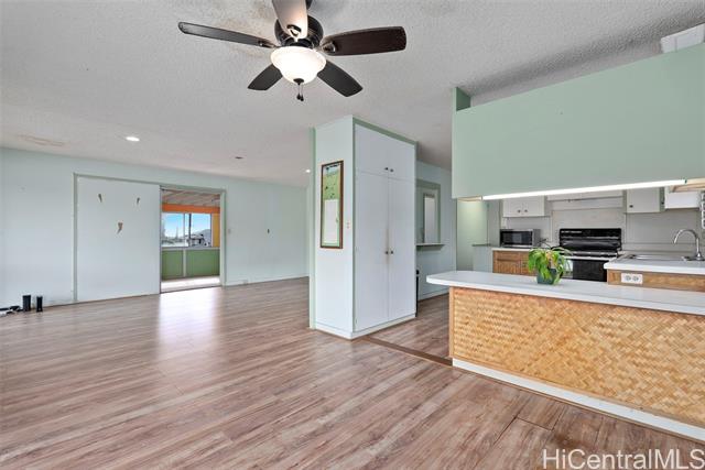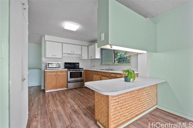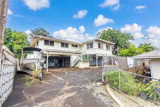 - Excellent location, great layout, and a usable lot! This exceptional property is located on a private flag lot away from the main road. It sits above the highway and has excellent natural airflow and views looking out across Kahala to the ocean. The fully enclosed yard provides generous parking, yard space, and a two-car carport. Upstairs, you'll find the living room, kitchen, 3 bedrooms, 2 baths, and a large enclosed lanai for added living space. The downstairs has a separate entrance and features a living room, bedroom, and bath, with a large covered lanai. Well-suited for buyers seeking a property they can redesign and personalize.