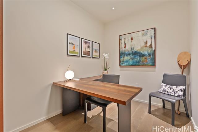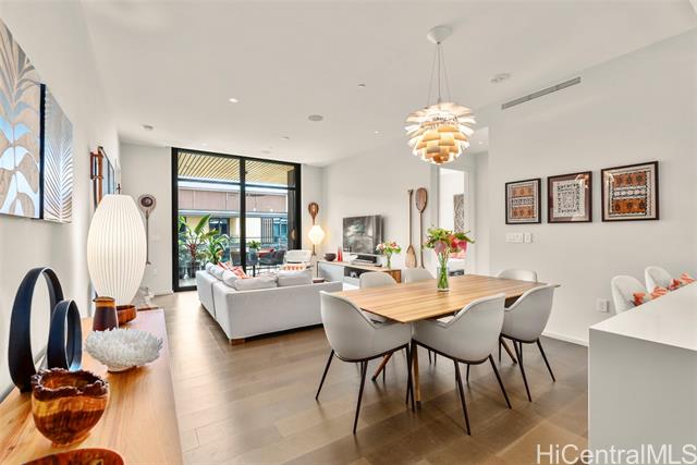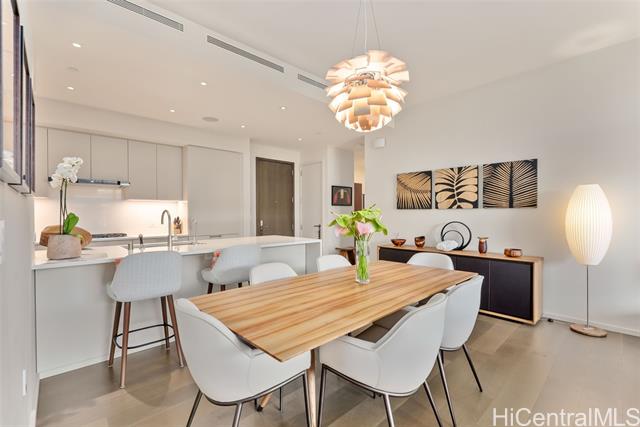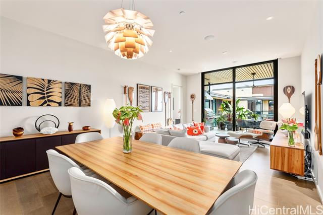 - Located on the coveted 8th floor of the prestigious Park Lane Ala Moana, this refined 2-bdrm, 2-bath Courtyard Residence with a den offers an exceptional blend of island luxury and exclusivity. Tastefully furnished, the home is curated with world-class design elements, highlighted by an exclusive Swiss-made dining table by Zoom by Mobimex, Louis Poulsen’s iconic Artichoke pendent and many more, setting a sophisticated tone for both everyday living and elegant entertaining. Soaring ceilings and top-floor positioning enhance the sense of openness and tranquility, while the versatile den provides the perfect space for a home office, or media lounge. Ideally located across from Ala Moana Beach Park and steps from shopping & dining, Park Lane offers resort-style amenities including concierge services, fitness center, pool, spa, private theater, dining room, lush landscaped grounds, and more. A turnkey opportunity to own a meticulously designed and furnished home in one of Honolulu’s most sought-after addresses.