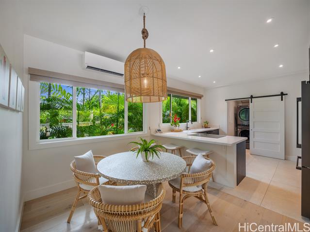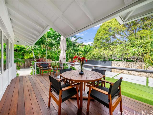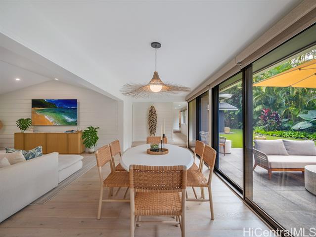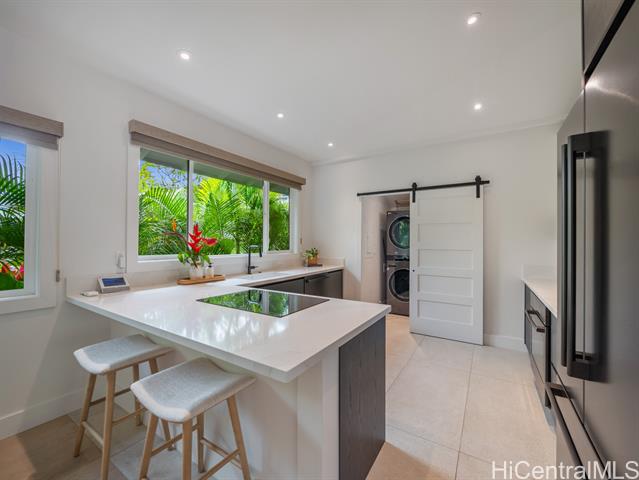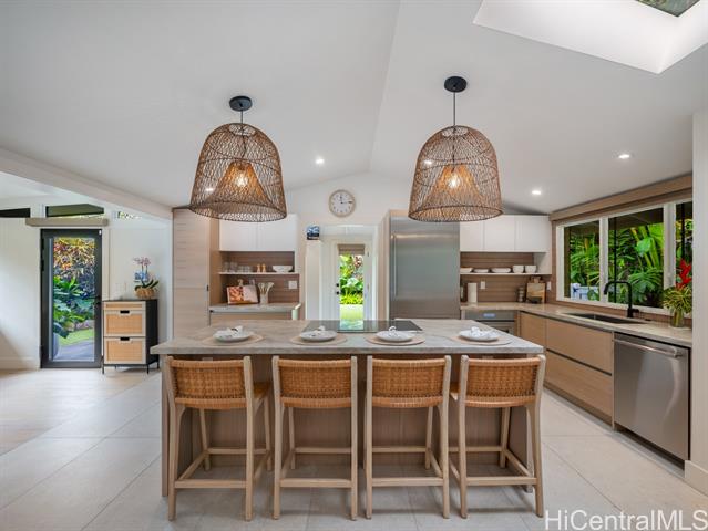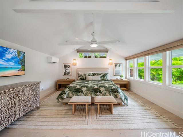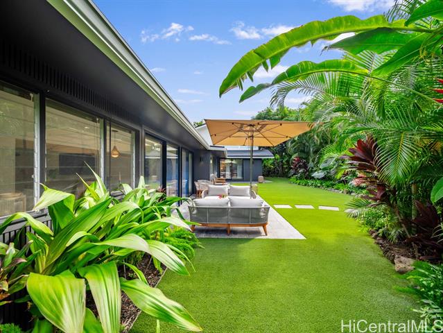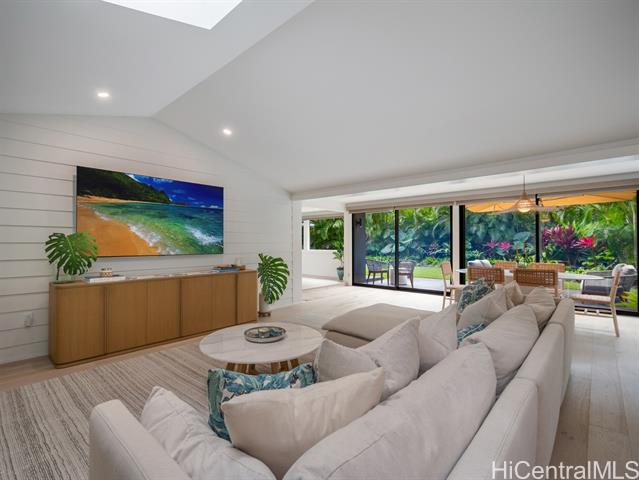 - Rarely available: large lot with 2 homes on one of Lanikai’s most coveted beach streets. It's easy to fall in love with this dream property where privacy, luxury, and lifestyle converge. Elevated, refined & stacked with extras, this custom compound features a beautifully renovated 4bd/3bath main house & an adorable 2 bd/1.5bath guest cottage. The motorized-entry gate leads to generous driveway parking +enclosed 2-car garage. Privately set back from the street, the main house showcases an open-concept modern design w/ sleek chef’s kitchen + prep kitchen, 3 spa-like bathrooms, split AC & spacious primary suite w/ double sinks & custom walk-in closet. Thermador, Sub zero & Bosch appliances, Taj Mahal leathered granite countertops & beautiful Duchateau wood floors blend effortlessly w/ lush resort style landscaping for indoor/outdoor life without compromise. Unwind in the sauna or perfect your short game on the custom putting green. New roof with 40-owned PV panels, 3 Tesla batteries & a wired video security system provide extra piece of mind. Additional storage room off the garage is ideal for surf & paddle boards or your home gym/office. Don't miss this opportunity to live the dream!