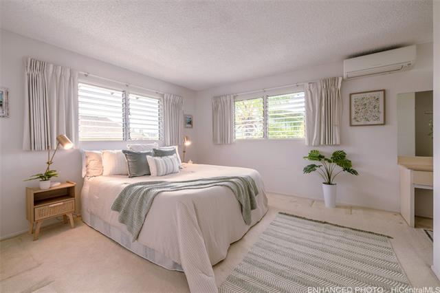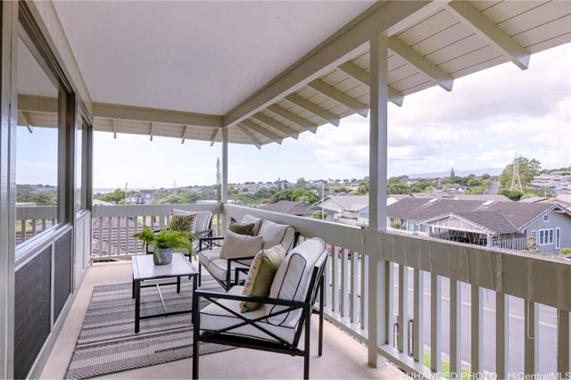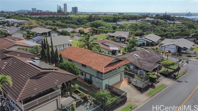 - FIRST TIME ON THE MARKET IN DESIRABLE NEWTOWN ESTATES! This 2 story, split level, 4-bedroom, 3-bath residence features 5 split A/C units throughout, a fully fenced yard, and mature landscaped grounds with producing Meyer Lemon trees. The 4th bedroom is considered a "rumpus" room and is located on the bottom level of the home with an en-suite full bath. Enjoy indoor-outdoor living in a peaceful neighborhood with 16 leased photovoltaic panels, paid in full for energy efficiency. Enjoy Pearl Harbor views and sunsets from the covered lanai. A wonderful opportunity to own a thoughtfully cared-for home in an established community.