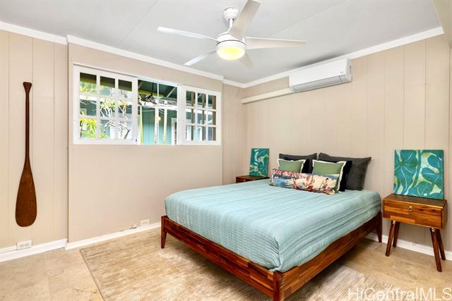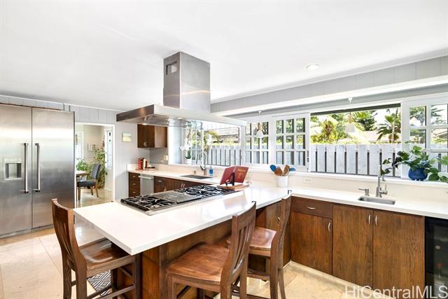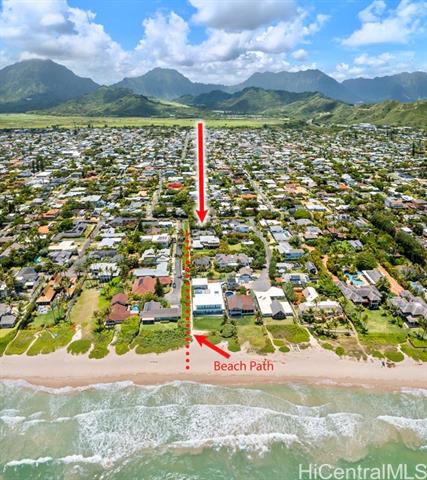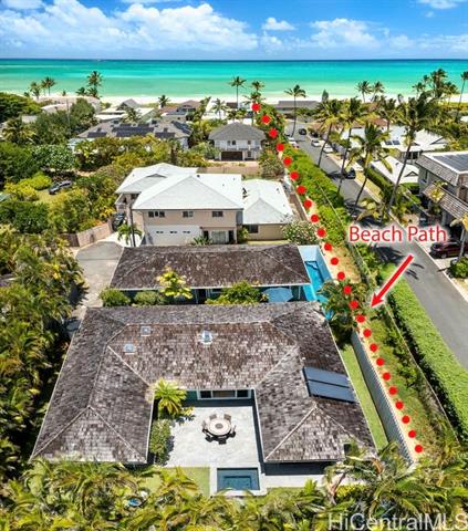 - $125K Price Improvement! Designed w/ elegance & functionality, this expansive 6 bdrm, 4.5-bath home goes above & beyond to capture the magic & luxuries of Kailua beach living. Walk out your private gate & a quick stroll down the path leads you to the iconic white sand of Kailua Beach. Go for a surf, then freshen up in your outdoor shower & start your day! In the eve, swim laps in your pool, then reward yourself w/ a soak in the hot tub under a star filled sky to the sound of palm fronds in the breeze, mesmerized by the flickering flame of tiki torches. The thoughtful layout of this home is versatile for entertaining guests, or multi generational living. The main house of 4 bdrms & 2.5 baths, while guest cottage can be utilized as 2 studio guest suites or used as 1 bdrm, 2 bath for potential rental income. For culinary enthusiasts, this home boasts a chef's kitchen, complete w/ Thermador refrigerator & dbl oven gas range. Cook delicious feasts & host large gatherings w/ ease. True Hawai’i living happens outdoors & this home’s lanai offers exactly that. Whether hosting al fresco family dinners, or watching the game, the lanai exudes the essence of Hawaiian hospitality & charm.