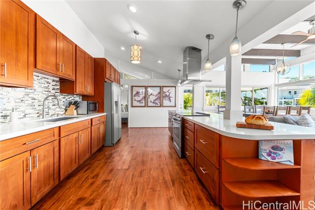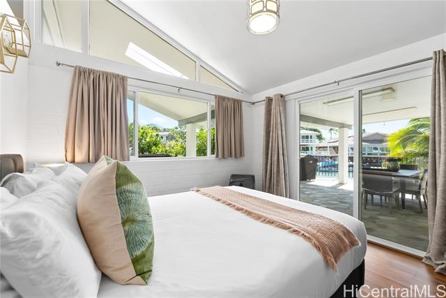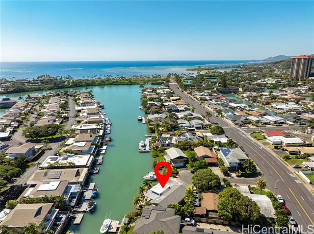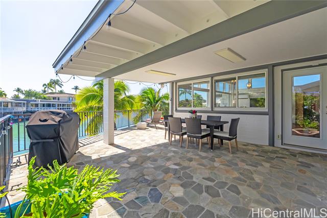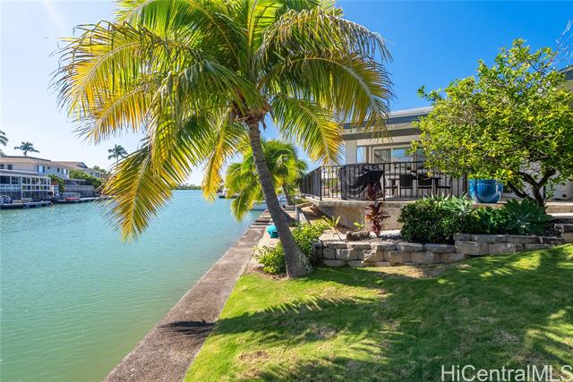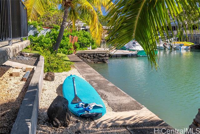 - Direct marina frontage with paved water access, this beautifully renovated single-level home offers stunning marina views and an exceptional indoor-outdoor lifestyle. Updated in 2020, the residence features a clean, bright interior with high ceilings and large windows that flood the space with natural light. A/C in all rooms, including bedrooms and living areas, ensures year-round comfort. Situated at the end of a quiet cul-de-sac, this property is removed from the noise and bustle of any main road. The property boasts curb appeal with a a manicured front yard and secured side and back yard. Outdoor living shines with a covered flagstone lanai, complete with full dining area and BBQ setup, plus a Jacuzzi ideal for relaxing after a day on the water. Additional highlights include an enclosed 2-car garage with extra interior storage, along with ample driveway parking for multiple vehicles. Imagine taking a kayak or boat ride to do your grocery shopping. Secure this lifestyle home and make the absolute most of all Hawaii has to offer.