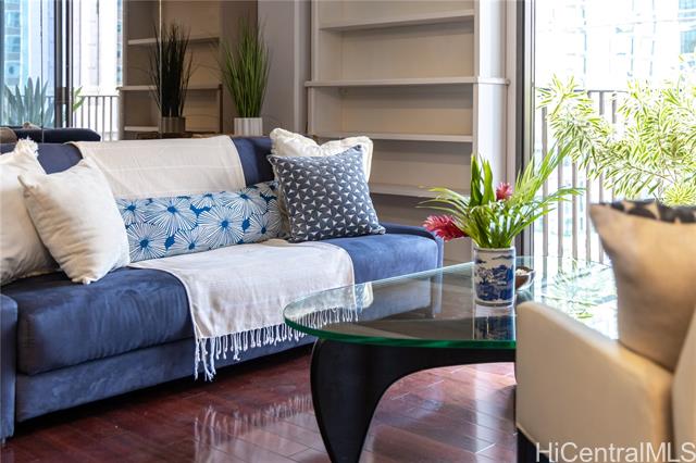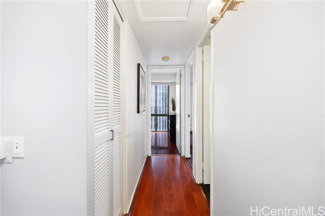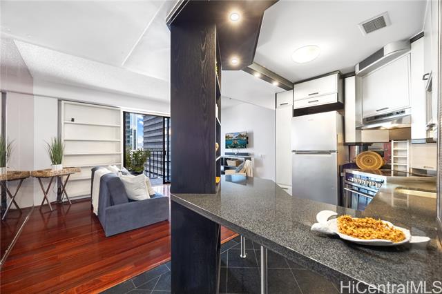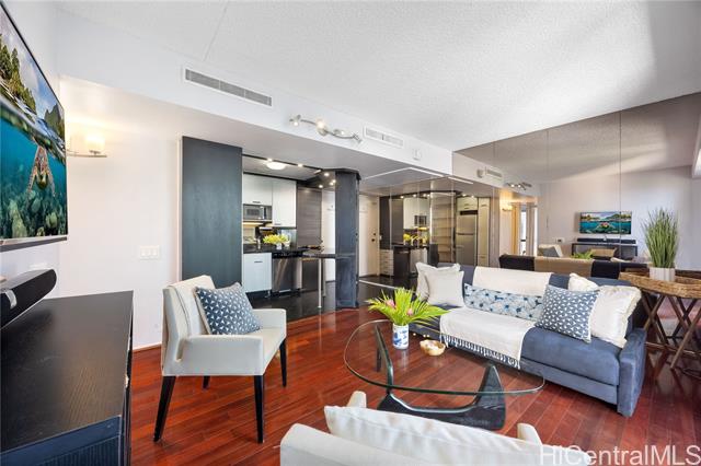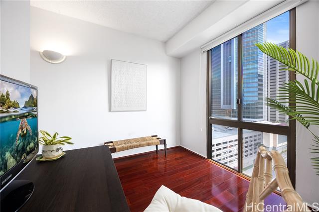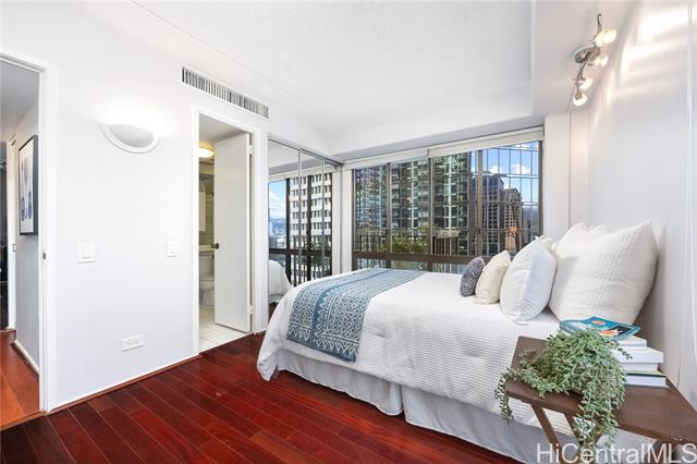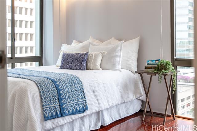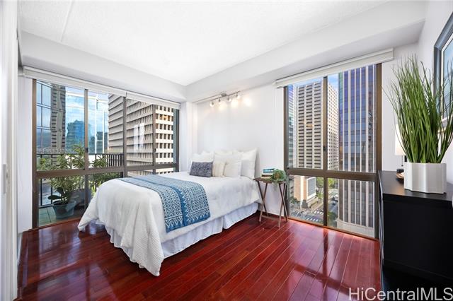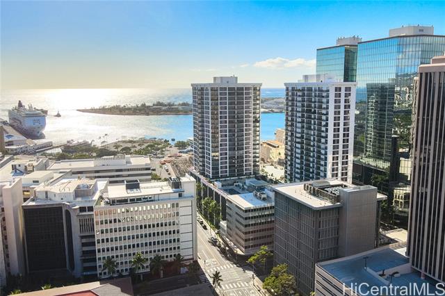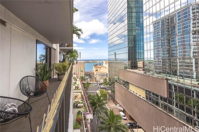 - Welcome to Harbor Square, in the heart of downtown Honolulu. This 2-bedroom, 2-bathroom corner unit is situated in the Town Tower, on the cool side of the building, and features a spacious lanai with city & ocean views. The interior features floor-to-ceiling windows, beautiful wood flooring, and a kitchen equipped with modern appliances. Both bedrooms enjoy ensuite bathrooms for added comfort and privacy, and there is ample storage with extra in-unit closet space and an additional storage locker. A great benefit of this property is the all-inclusive maintenance fee, which covers central A/C, water, electricity, cable, and high-speed internet. The secure building features 24-hour security and excellent amenities, including a recently renovated pool and modernized BBQ deck. Ideally located, you are just minutes from Kakaako, Aloha Tower, Queen's Medical Center, State Capitol, Prince Kuhio Federal Building, and top universities, with easy access to H-1 and Nimitz Highway. Although parking is not assigned, stalls are available for rent within the building. This is an excellent opportunity for convenient, high-quality living in Metro Honolulu.