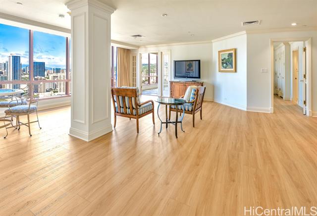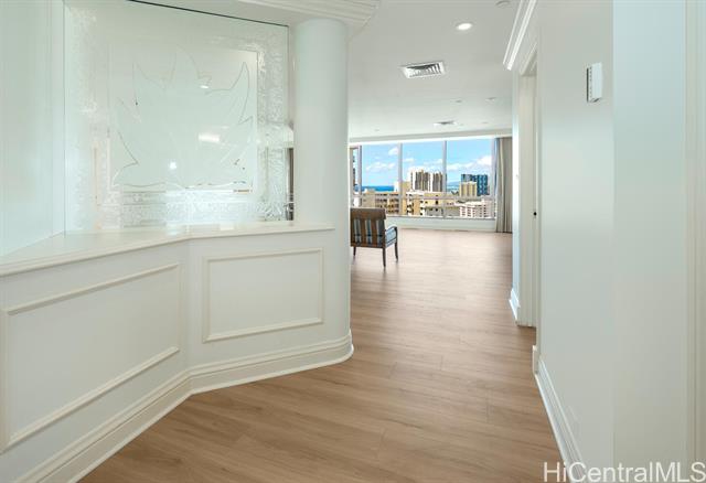 - Waikiki Landmark is perfectly located at the gateway to world-renowned Waikiki. This 2 Bedroom, 2 Bathroom Penthouse showcases spacious living and dining areas, well-appointed finishes & expansive views of the city and ocean. New wood flooring & paint throughout the unit. Privacy ensured with separate elevators taking you directly to the 35th floor. Building amenities include concierge services with multilingual staff, 24-hr security, newly updated fitness center, meeting room and an amazing outdoor recreation deck with three resort-style pools, Jacuzzi and BBQ/entertainment areas. Two parking stalls included. Resort-mixed use zoning.