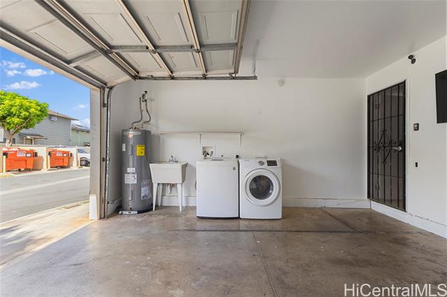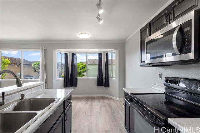 - Refined and inviting, this 3-bedroom, 2-bath home in Lombard Way in Ewa by Gentry offers effortless comfort in a prime corner-lot location near the community entrance and across from guest parking. A low-maintenance yard and owned PV system reflect thoughtful, modern living. Inside, the freshly painted interior and vinyl flooring throughout the main living areas and first-floor primary bedroom create a clean aesthetic. The primary suite features a walk-in closet and full en suite bathroom on the main level adds ease, flexibility, and separation. Meanwhile, the spacious two-car garage provides ample room for parking and storage. Just minutes from Laulani Shopping Village and Ewa Town Center, this residence delivers a serene, lifestyle paired with everyday convenience. Ask us about VA assumable for eligible Buyers!