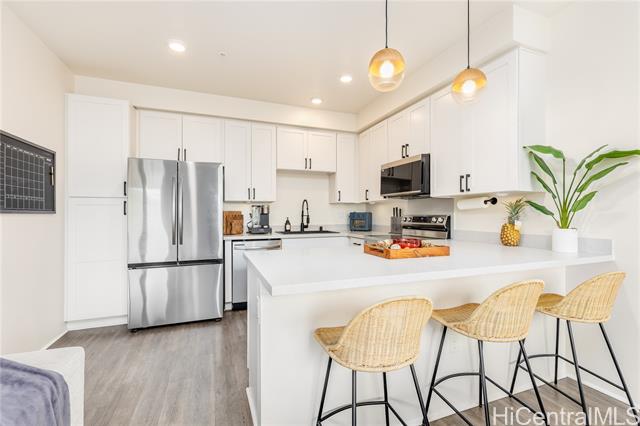 - Welcome home to Kohina at Hoopili in the heart of Hoopili! This gorgeous, partially remodeled townhome includes 2 bedrooms, 2.5 baths, attached 1-car garage and 2 additional tandem parking! Located on the cool side of the building, this unit is just steps away from Festival Street, Teaspresso, Dominos, and Sage Creamery! If you hate carpet, you're going to love that this unit has gorgeous luxury vinyl planking throughout! Hardware and fixtures have been beautifully updated, and the character throughout the home is undeniable! Be a part of all that Hoopili has to offer including, but not limited to: dog parks, kiddie parks, community pool, pickleball courts, basketball and volleyball courts, local businesses, and so much more! Hoopili boasts on and off freeway access, (3) different Skyline rail stations, and is within <30 minutes from Schofield, Wheeler, Pearl Harbor and Hickam AFB. Call your favorite local Agent to schedule your private showing today! First Open House weekend, Saturday, 1/17 and Sunday, 1/18 from 2-5pm! See you there!