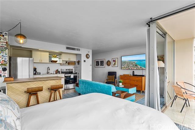- This bright, open-floorplan studio offers sweeping Makaha Valley, mountain, and panoramic ocean views with cool, refreshing trade winds flowing through. Unwind with golden sunsets and enjoy the feeling of a private island retreat every day. Your maintenance fee covers central AC, electricity, hot water, sewer, cable TV, parking, security, and grounds, making this an incredibly easy and cost-efficient way to live in paradise. Amenities include a pool, BBQ area, guest parking, and community laundry. Minutes from Makaha Beach, Ka'ena Point, Yokohama Bay, Ko'Olina Lagoons, Electric Beach and local favorites like Beach House 604, Lanterns, 808Puffs, Monkeypod Kitchen, and Roy's Ko'Olina this home puts you close to surfing, hiking, snorkeling, and some of the most beautiful beaches on Oahu plus some of the best kept food secrets the island has to offer. Enjoy island living, authentically.