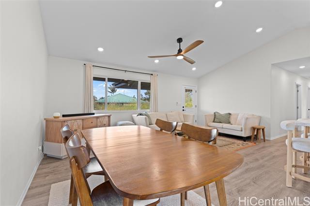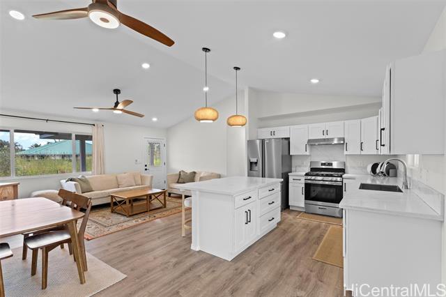 - This newly constructed residential home was finalized on December 11, 2023. This 3-bedroom, 2-bathroom property features a kitchen with beautiful quartz counter-tops and a high-quality gas range and oven. The dining area leads into a living room with vaulted ceilings. Additional interior features include a laundry room with a sink, a 2-car carport, storage space, and double-pane vinyl windows. The exterior offers a large covered patio and is situated on a paved road with easy highway access. The location is approximately 25 minutes from Hilo and 10 minutes from Pahoa or Keaau. The home includes a 10,000-gallon water storage tank equipped with a UV lightbar and two-stage string filters. The propane system is set up for two tanks with an automatic switch-over feature. This brand-new construction is easy to show. Please contact me to schedule a viewing.