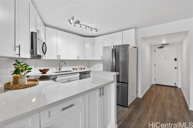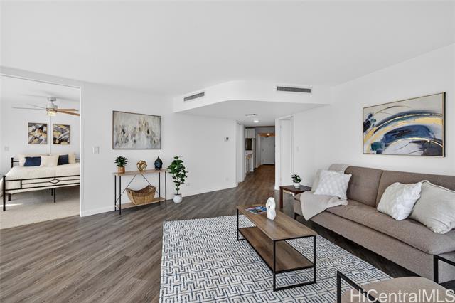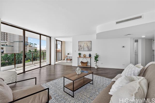 - A MOST EXTRAORDINARY LUXURIOUS CONDO-PRICED TO SELL! Long 44-year LAND LEASE through 11/30/2069. Enjoy gorgeous open panoramic 7th-floor views over Fort DeRussy, Diamond Head, and the Hilton Hawaiian Village from the living Room and bedrooms! Spacious 2-bed/2-bath with 1,331 sq. ft. interior+huge 226 sq. ft. wrap around lanai giving living room, and each bedroom their own private exterior lanai (1,557 total sq.ft.). ALL NEW kitchen cabinets, quartz countertops, new stainless-steel appliances, renovated bathrooms, washer/dryer, and vinyl plank flooring. Convenient new ABC Store on the ground level, restaurants galore downstairs, close to the swimming beach & lagoon at Hilton Hawaiian Village, & a short bus ride to Ala Moana Beach Park and mall. There is more to love about this condo and location - it includes one covered, secured parking stall (Level 3), swimming pool, and large BBQ area w/sundeck. Condo is vacant and easy to show on short notice. Building allows 90 days-or-longer rentals and two pets. $2,081.86/mo. HOA fee; plus $1,361.15/mo lease rent, plus prop tax $196/mo; plus required HO6 condo insurance.