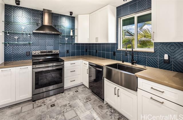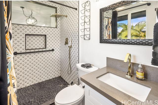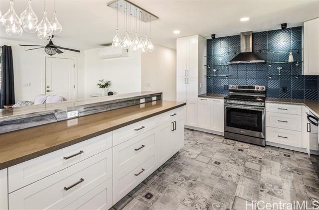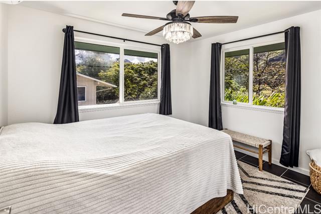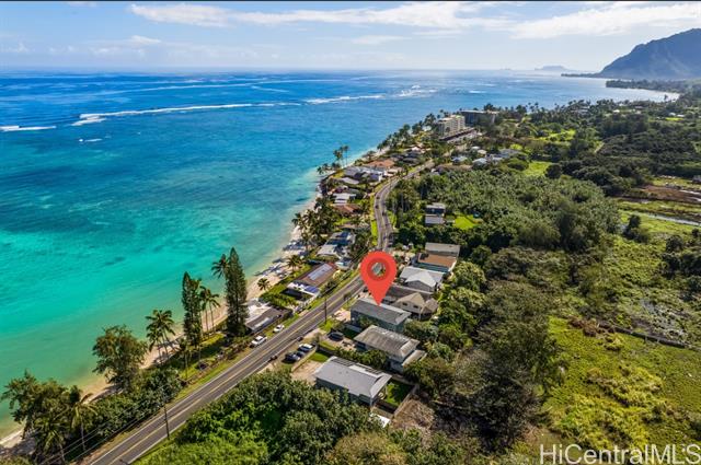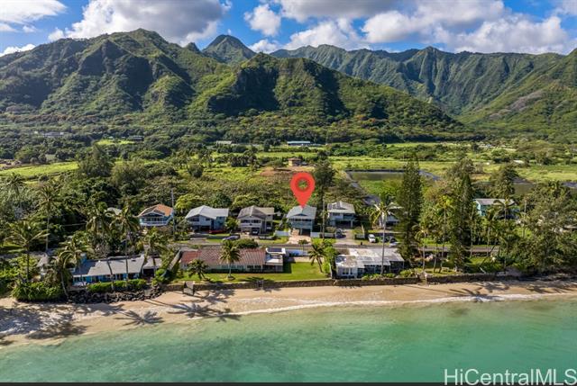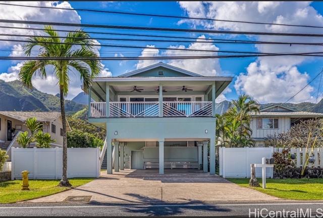 - Perfectly positioned in Hau'ula on Oahu's North Shore, where life moves at a more relaxed, country pace and beautiful surfing beaches stretch along the coastline, this stunning two-story residence captures the essence of island living. Enjoy sweeping ocean views from the front of the home and majestic Ko-olau Mountain views from the back, creating a breathtaking backdrop from sunrise to sunset. Completely remodeled in 2022, the home showcases a sleek, modern design with updated appliances, clean lines, and quality finishes throughout. The thoughtful layout offers 2 bedrooms and 1 bathroom on the main level-ideal for guests or multi-generational living-while the upper-level features 3 additional bedrooms and 2 bathrooms, including a primary room with en-suite bath. Large glass sliding doors lead out to the ocean-facing lanai providing the perfect space to unwind in the evenings, enjoy cooling ocean breezes and take in breathtaking sunrises. A covered 2 car carport adds convenience, while the homes elevated setting enhances natural light and airflow throughout. Move-in ready and beautifully updated, this North Shore retreat blends modern comfort and contemporary island living.