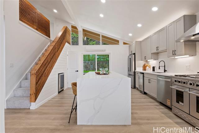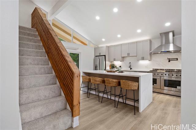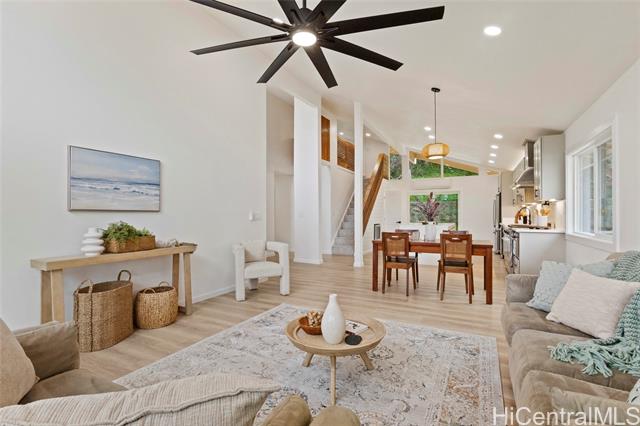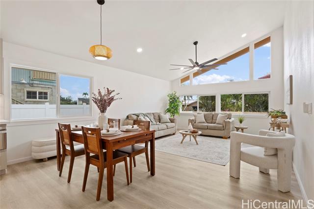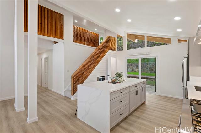 - Beautiful Kalama Valley home comes with 4 bedrooms and 2 bathrooms. The main floor is 1,566 sq ft and the upstairs loft offers and additional 406 sq ft. This home has been tastefully upgraded with new luxury vinyl flooring throughout, new kitchen cabinets, and quartz countertops. The vaulted kitchen and dining room flow seamlessly to the open concept living room with tons of natural light from the large windows. The over 8,000 sq ft lot offers usable outdoor space that is perfect for entertaining. Enjoy all the benefits of living in Hawaii Kai with the top rated public schools, beautiful beaches, and close proximity to shopping.