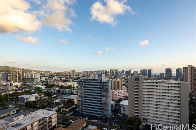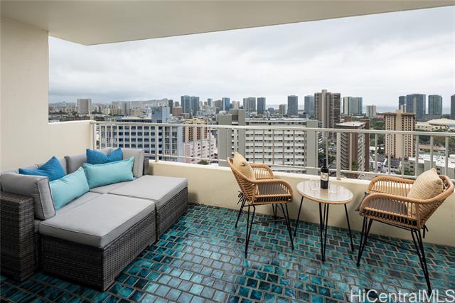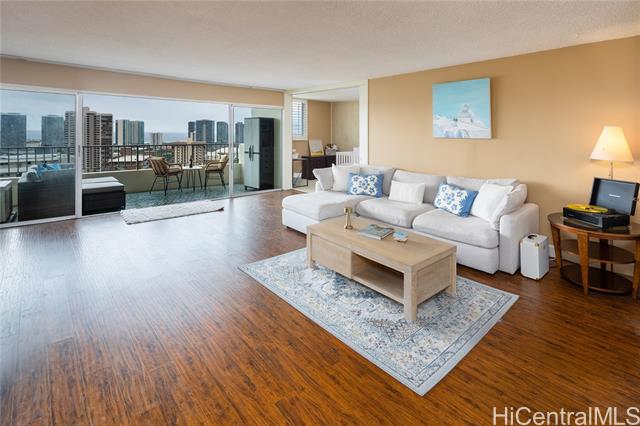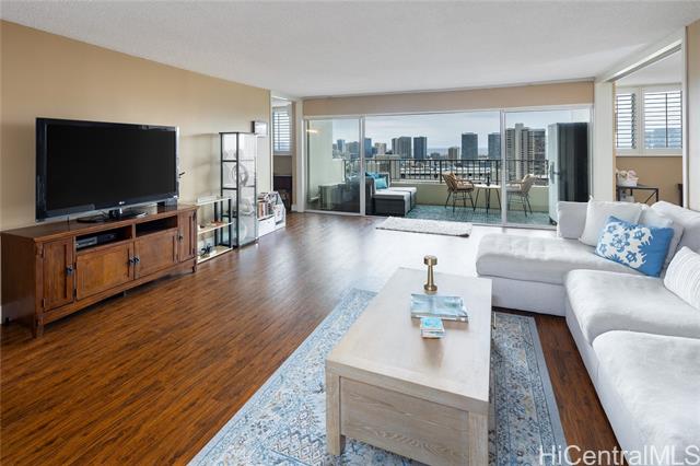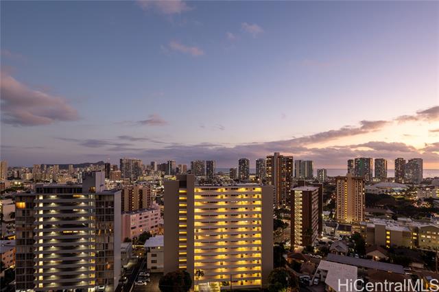 - Rare chance to own a high-floor 3-bedroom unit in Prospect Tower Apts, a much-loved building at the top of Ward Ave. To illustrate the significance, there hasn’t been a 3-bedroom listed here since 2017, and only one other private sale in '21. Needless to say, it won’t last long! This unit boasts 1,440 sq ft of living space, with an extra half bath w/ washer/dryer! Beautiful wood floors in the living room lead to a large, breezy lanai with spectacular city, Diamond Head, ocean and fireworks views. Recently installed split A/C and updated primary bath vanity showcase improvements to a hidden gem. The large kitchen has such generously appointed cabinets & drawers rarely seen in condos. Conveniently located near the business district, Blaisdell Concert Hall & Arena, Ala Moana Shopping Center, Straub Medical Ctr & Punahou School, as well as shops and restaurants, the well-managed, secure building has high owner occupancy and 100% hurricane insurance! Amenities include pool, barbecue, gardens and an extra storage locker on the same floor! Low maintenance fees cover cable, hot water and sewer. There is one covered parking stall, option for a second rented stall and 8 guest parking spaces.