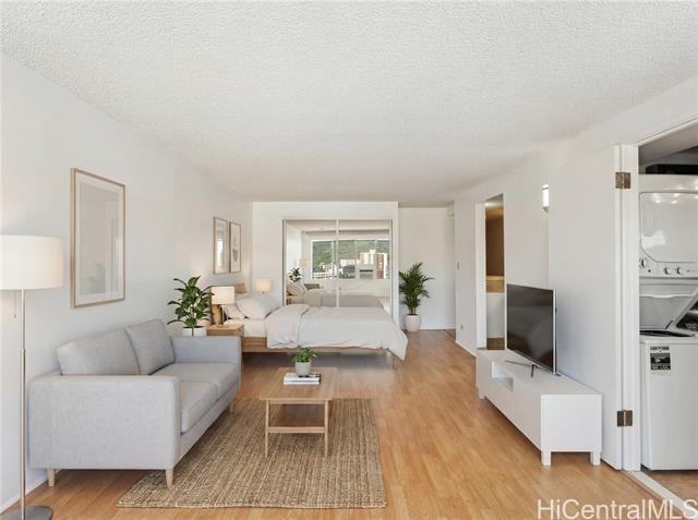 - Move-in ready high floor studio with in unit laundry and 1-parking stall at Regency Tower. This 400sf is efficiently laid out with a lot of natural light and facing the Northeast trade winds for fresh air. The Regency Tower features security, ample guest parking, a swimming pool, and a resident manager, along with a convenience store on the ground level! (Some photos have been digitally staged)