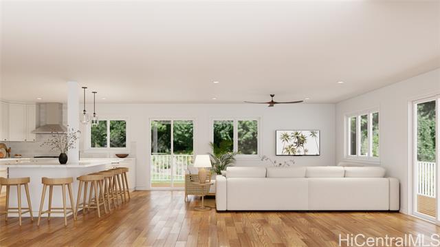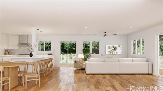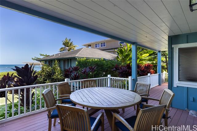 - Welcome to 68-17 Laau Paina Place, a rare oceanfront property where the beach becomes an extension of your home. Step directly from your private beachfront lanai onto the sand. The main house is two stories with 4 beds, an office, a garage, and 4 baths, featuring an open floor plan and ocean views from nearly every room plus two covered ocean-facing lanais. The second home is an original 1940s cottage with 2 beds and 1 bath and an oceanfront patio. Waves break on the outer reef, leaving the beach swimmable year-round. Positioned in front of Devil’s Rock, renowned for big-wave surfing, tow-surfing, diving, and scuba. Launch jet skis from your front yard. Split A/C, separate meters, and septic. 1 of 4 beachfront homes within this 17-home neighborhood. Deeded beach access for Laau Paina Pl residents. Minutes from Haleiwa within easy reach of Honolulu and the airport. Mokuleia is known for empty beaches, scenic bike rides, polo fields, Dillingham Airfield, Dillingham Ranch, horseback riding, and hiking trails. Architectural renderings and photos 2-5 illustrate a potential kitchen-living area. Buyer to verify all information.