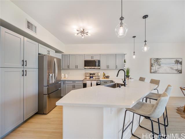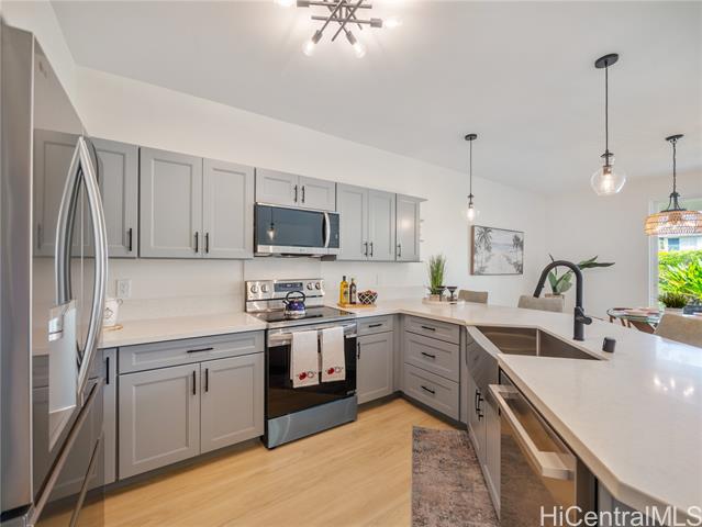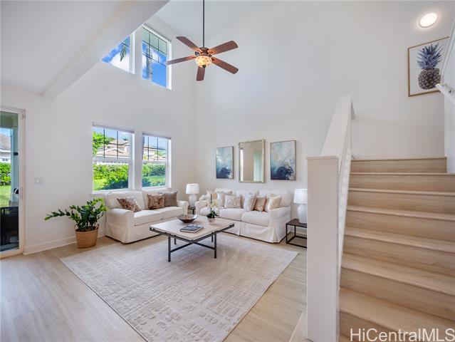 - Completely transformed and ready to captivate, this remodeled gem in Ko Olina offers luxurious living in a sought-after community. Brand-new luxury vinyl floors and fresh, modern paint set the tone, while the kitchen and bathrooms shine with sleek cabinetry and quartz countertops. The main suite is a private oasis, boasting a spa-like bathroom with a soaking tub and a new tile shower. Step onto the expansive lanai to savor morning coffee or stunning sunsets. The chef’s kitchen features all-new appliances, perfect for cooking or entertaining. Beyond the home’s stylish interiors, Ko Olina offers an unparalleled lifestyle: pristine lagoons, a championship golf course, vibrant dining, and perks like discounted golf rates and free registered Lagoon 4 parking. Stay active with the tennis center, gym, and daily yoga classes. Plus, with a legal 30-day minimum rental period, this property suits both second-home seekers and investors.