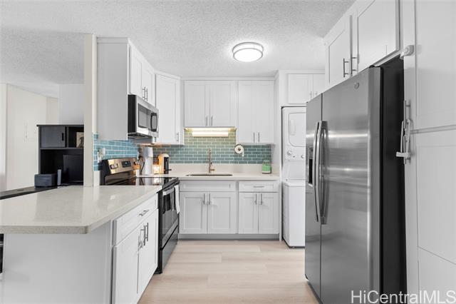 - Stunningly Remodeled in 2023, Top-Floor Corner Unit with No Stairs! Welcome to this beautiful three-bedroom, two-bathroom corner unit, complete with two assigned parking stalls. This home has been upgraded with high-end finishes, offering the perfect blend of style, comfort, and functionality. As you enter, you'll be greeted by the sleek stainless steel appliances and gleaming quartz countertops in the kitchen. The under-mount sinks and premium hardware throughout the kitchen and bathrooms highlight the meticulous attention to detail that went into the renovation. The spacious bedrooms feature ample closet space for easy organization, while the bathrooms exude luxury with a walk-in shower in the primary bath and sophisticated finishes. For added convenience, this unit comes with an in-unit washer and dryer, making daily chores a breeze. Step outside to enjoy not one, but two separate lanais perfect for sipping your morning coffee as you listen to the peaceful stream below, or unwinding with a glass of wine while surrounded by natures tranquility. This meticulously designed unit is a true gem, don't miss the opportunity to call it your new home!