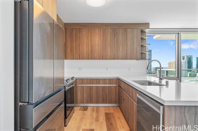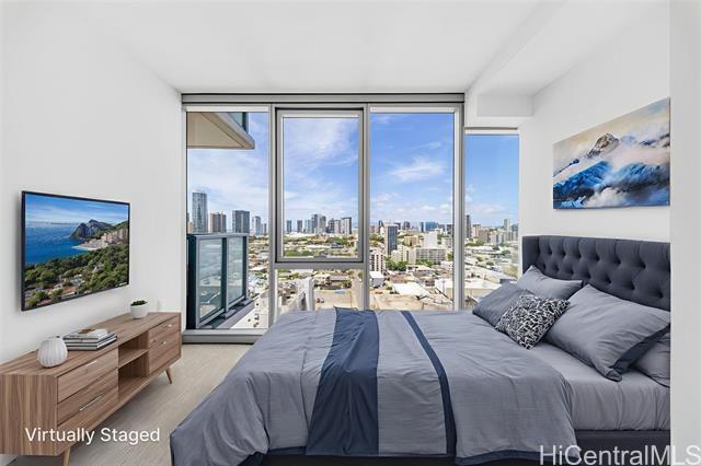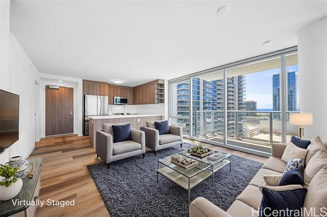 - The Park on Keeaumoku is a thoughtfully designed new development that brings modern, comfortable living to the heart of a thriving community. Just minutes from Ala Moana Shopping Center, dining, and entertainment, everything you need is right outside your door. This corner residence offers the ocean views along with expansive floor-to-ceiling windows that fill the space with natural light. The open-concept layout features quartz countertops, luxury vinyl plank flooring in the living areas and kitchen, split AC in every room, and a private lanai to take in both city and ocean vistas. Enjoy resort-style living with exceptional amenities, including an infinity pool and spa, private BBQ pavilions, a movie theater, an indoor fitness center, yoga studio, sauna, and stylish clubrooms perfect for private gatherings.