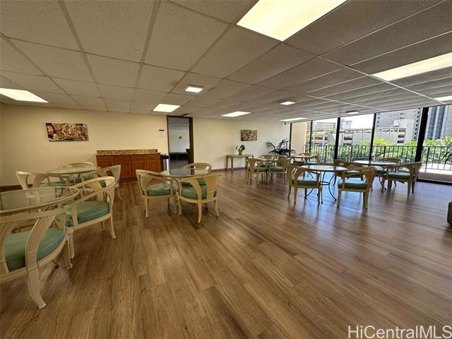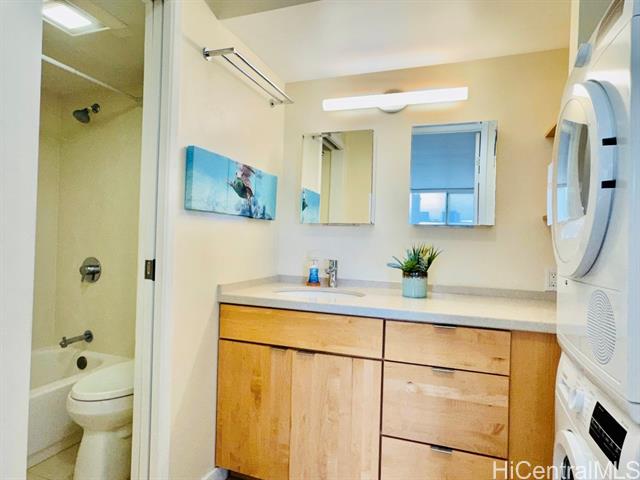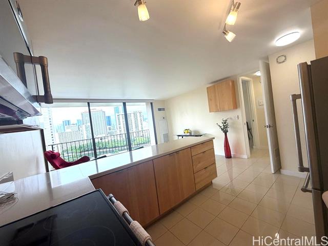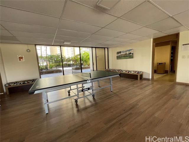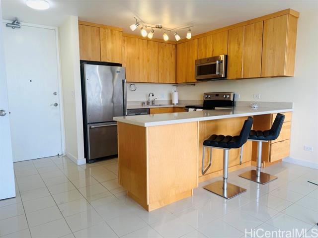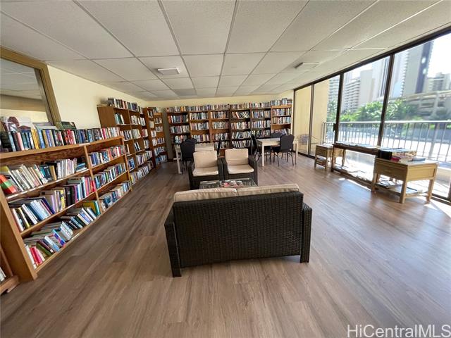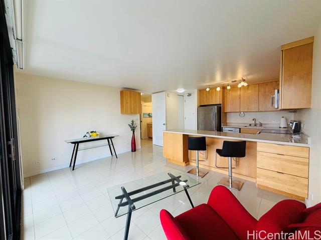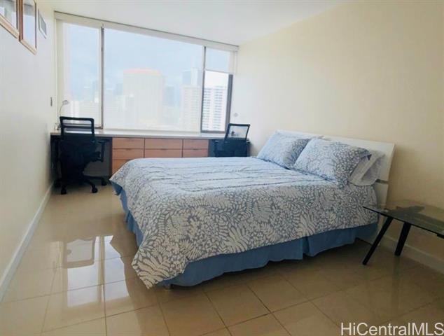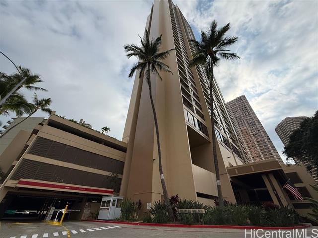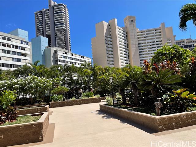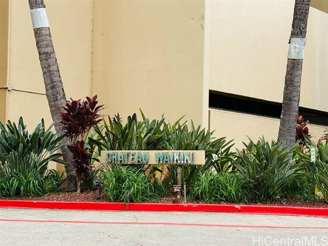 - A must see! Chateau Waikiki is conveniently located at the entrance to Waikiki with resort-like amenities. This is a well-maintained, spacious 1-bedroom, 1-bathroom unit with canal/city/sunset view. 1-assigned parking stall inside a gated garage. NO POPCORN CEILING!! Tile flooring throughout the unit with soundproof underlayment. Custom maple cabinets and Quartz countertops in the open kitchen. Custom built Quartz desktop working station in bedroom. Custom-made automatic shades in living and bedroom. Washer and Dryer in unit. The 5th floor deck is beautifully landscaped with BBQ cabanas to entertain/relax with family/friends. Other amenities: heated saltwater pool, sauna, 2 fitness rooms, 2 recreation rooms, library. 4 modernized elevators. Easy access to Waikiki, Ala Moana shopping center, beaches, restaurants, entertainment and much more. Maintenance fee includes: AC, electricity, water, hot water, sewer and common area. A good size storage locker assigned to this unit on the same floor. There's bike and surfboard storage. 24 hour security. 100% hurricane insured. Unit in move-in ready condition. Furniture in the unit is included in the sale.