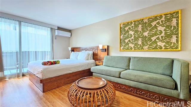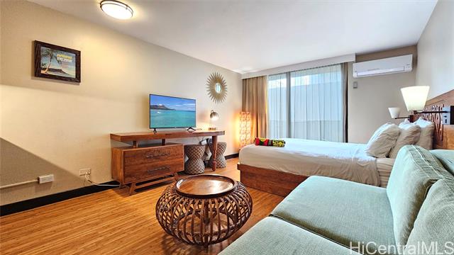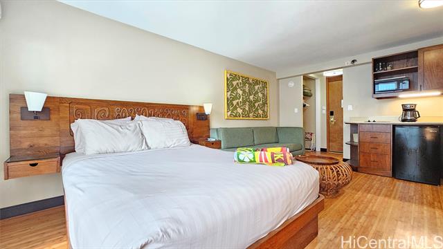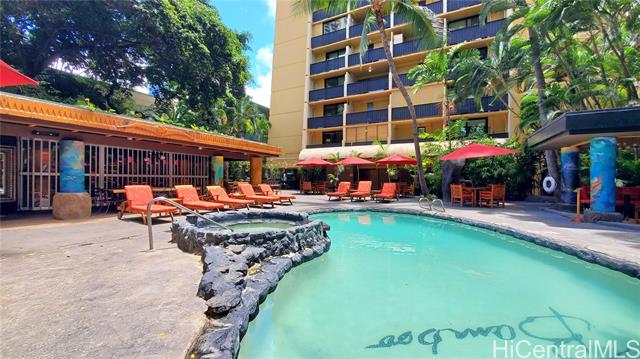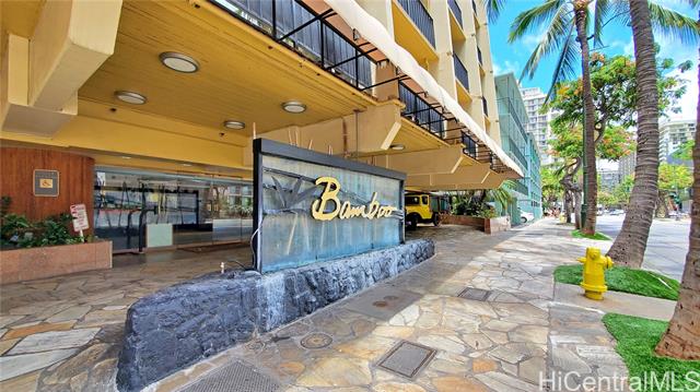 - Discover this turnkey 264 sq ft studio in boutique Bamboo Waikiki, legally permitted for short-term rentals and in resort zoning. This furnished unit is on serene side away from Kuhio Avenue, providing tranquil retreat steps from Waikiki. Features include kitchenette with two-burner cooktop, full-size refrigerator, microwave, coffee maker, plus bathroom with tub/shower. Recent upgrades include new split air conditioning, sound-dampening glass doors, renovated elevators. Property showcases lagoon-style pool with cascading waterfall surrounded by tropical foliage. Additional amenities include jacuzzi, BBQ, lounge chairs, thatched cabana seating, Ko Tiki Terrace poolside restaurant. Castle Resorts operates front desk, or opt for independent self-management. Prime central Waikiki location places you less than 1.5 blocks from Waikiki Beach, moments from International Market Place, Royal Hawaiian Center, luxury boutiques, acclaimed dining, entertainment. Monthly maintenance fee covers all utilities: electricity, water, sewer, cable TV, high-speed WiFi. Excellent investment in boutique property known for strong occupancy rates and zen-inspired atmosphere.