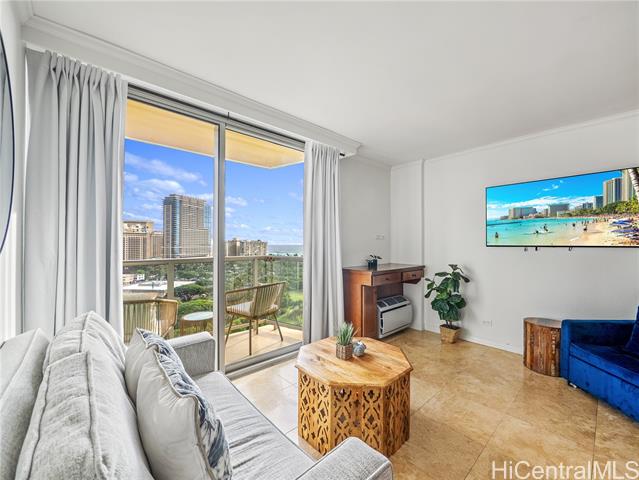 - Exceptionally rare high-floor ocean-view studio in Luana Waikiki; the desirable 09 stack features unobstructed ocean views and a broad overlook of Fort DeRussy Park. From your private lanai, take in the signature park-to-ocean scenery and enjoy Waikiki’s popular Friday night fireworks. This furnished studio offers a smart layout with a queen bed and sofa sleeper, plus a convenient kitchenette equipped with a cooktop, mini refrigerator, and microwave; ideal for light meals and extended stays. Enjoy hotel-style amenities including a swimming pool, BBQ area, and fitness center/gym, all in a prime Waikiki location near beaches, dining, and shopping. A newly announced luau experience nearby is anticipated to enhance the area’s resort-style appeal. Rare opportunity to own a standout Luana Waikiki ocean-view studio with Fort DeRussy Park views and a lanai.
