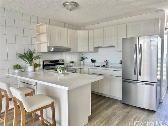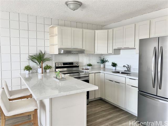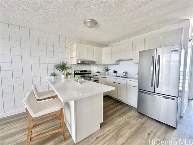 - Super Convenient Location in the Heart of Kalihi - close to shopping, schools, business, bus routes. Newly Renovated Kitchen, Bathroom, Stainless Steel Stove; Brand New Refrigerator, Hood! Cute Barn Door and new paint! Newly renovated flooring (2024). Building has gated parking, relatively near the entry. New Security Door and new baseboards. Resident Manager is on the premises. Pet Friendly (Please Verify House Rules). Maintenance Fee includes Sewer and Water, Electric is separated per unit with HECO. Maintenance fee is $411.68 / month and 50% Owner Occupancy. Hurricane Insurance is 100%. Don't miss out : Bright and cheery - close to Costco, Home Depot, Airport, Freeway, it's going to be great!
