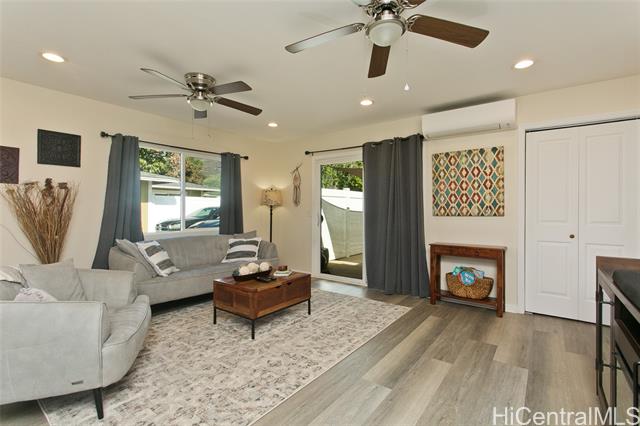 - Welcome home to Mauna Hale Estates in Makaha. This intimate residential development, located just a 10-minute walk from the world-famous Makaha Beach Park, features detached, separately metered 3-bedroom, 2-bathroom homes with NO HOA fees. Enjoy beautiful Waianae Mountain views, a private en-suite, and your own outdoor patio space. This home features split A/C units and ceiling fans, while a solar-powered water heater helps keep electricity costs low. Interior highlights include luxury vinyl flooring, elegant quartz countertops and many more upgrades for the perfect island living.