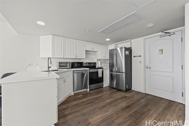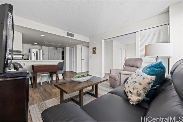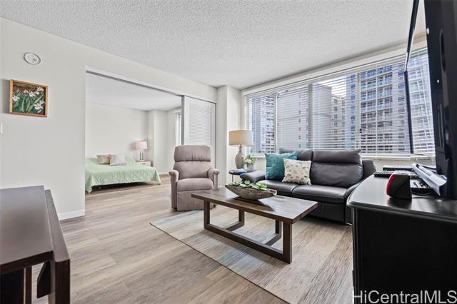 - Peace and tranquility await you at One Kalakaua Senior Living! This 2 bed, 1 bath unit has been lovingly cared for over the years and features all the classic home comforts you could want: stainless steel kitchen appliances, vinyl plank flooring, a convertible living space with sleek sliding doors, and huge windows that let in tons of natural sunlight with city views of Honolulu. The large quartz counter top is perfect for home cooks to whip up a feast, and the ADA accessible bathroom is a huge plus with no step-in to the shower, and grab bars strategically placed throughout. The building itself offers a wide range of amenities including, but not limited to, a library, dining room, gym, music room, pool, cafeteria, and outdoor rocking chair seating area so you can enjoy a cold drink with your friends on warm summer days. Just minutes away from Ala Moana, Salt at Kakaako, and Ward Village. Must see to fully appreciate all this unit has to offer!