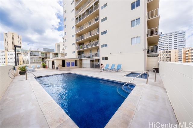 - An unbeatable value in Waikiki-this is the lowest-priced fee simple one-bedroom condo currently available! Bright, well-kept, and ideally located just two blocks from world-famous Waikiki Beach, this unit offers easy access to restaurants, cafés, and shopping in one of Oahu's most iconic neighborhoods. The secured building features key fob access, a resident manager, and a rooftop amenity deck with a pool, hot tub, gym, BBQ grills, and more. One assigned covered parking stall is included. Monthly maintenance fees cover electricity, gas, internet, cable, water, and sewer, making ownership simple and cost-effective. Whether you're looking to live in Waikiki full-time, purchase a second home, or invest in a rental, this condo checks all the boxes. Priced to sell quickly-don't miss this rare opportunity to own a piece of paradise in the heart of Waikiki.