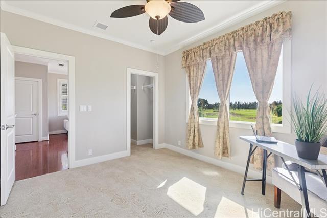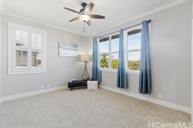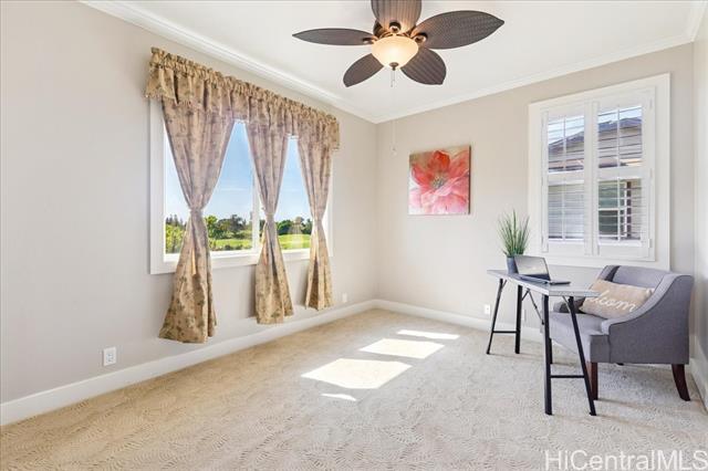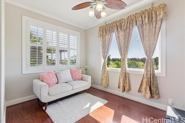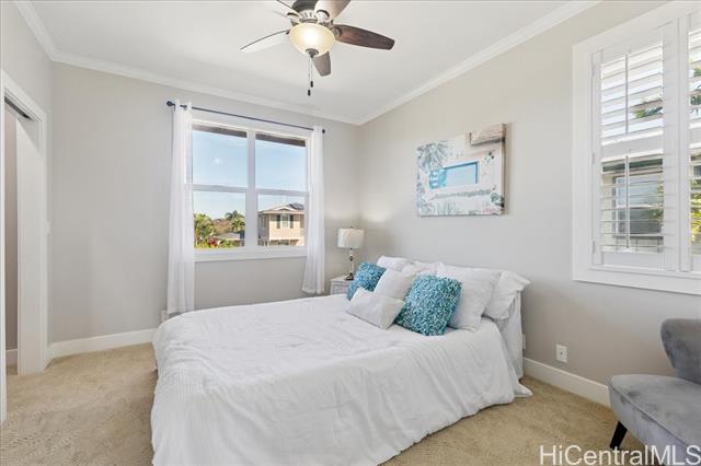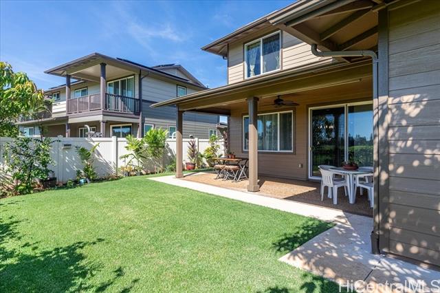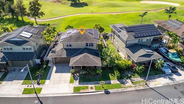 - Luxurious island living awaits in this 4-bedroom, 2.5-bath executive home overlooking the 6th hole (A course) of the Hawaii Prince Golf Course. This residence features a spacious open floor plan, a gourmet kitchen with stainless steel appliances and a large pantry, and an expansive primary suite with a walk-in shower and soaking tub. The upper level offers a loft for an office or media area with views of the lush green fairways along with three comfortably sized bedrooms. Enjoy a beautifully landscaped yard that enhances the island lifestyle with lilikoi, lemons, bananas, and green onions. A covered lanai ideal for outdoor gathering and relaxation. Key highlights of this home includes central A/C, solar water heating, owned PV panels, high ceilings, plantation shutters, and a 2-car garage with driveway parking. Adventure in and about Ewa to the many community events, various shopping centers, eateries, and numerous golf courses, and more in this thriving community.