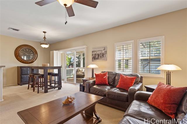 - Welcome to tranquil resort-style living at private Coconut Plantation in Ko'olina. Nestled between the world class golf course and lagoon 1. This gated community offers exclusive access to a luxury pool area complete with a recreation and BBQ space. The home itself is a 2 BR/ 2BATH/ Garage with a DEN! (Feels like 3!). Featuring two lanais, including one overlooking a serene garden setting. Expansive living room perfect for entertaining! Perfectly positioned to enjoy the best of Ko Olina, this home is moments from celebrated restaurants, four stunning lagoons, and premier resorts including the Four Seasons, Aulani, and the Marriott. With quick access to the H-1 Freeway and nearby shopping at Costco, Target, and Kapolei Commons, this location offers an exceptional blend of resort-style living and modern convenience. first Open House January 18, 2026 from 1p to 4p.