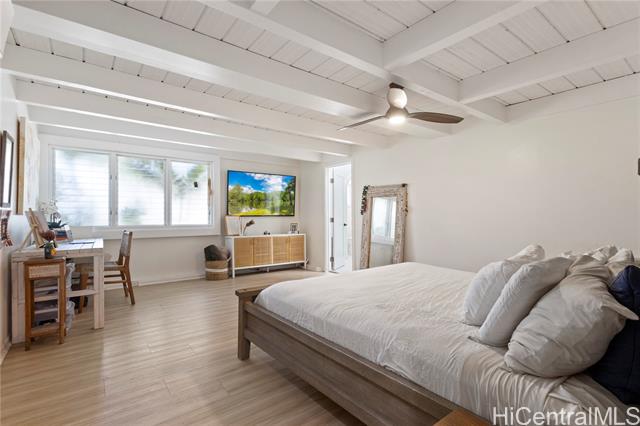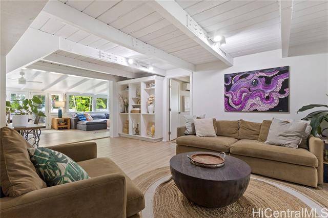 - Welcome to your beachside paradise—just one lot from the ocean and directly next to the beach pathway on a quiet cul-de-sac. This lovingly maintained and upgraded 4-bedroom, 2-bath home offers 2,970 sq. ft. of living space on a 7,194 sq. ft. lot, blending comfort, space, and the ultimate island lifestyle. The open-concept design features a spacious great room, separate family room, and an expansive kitchen with island cooktop, granite countertops, gas stove, and double ovens—perfect for gathering with family and friends. A versatile loft adds flexible space for an office, media room, or guest retreat, with abundant storage throughout. Enjoy 918 sq. ft. Lanai that invites seamless indoor-outdoor living, overlooking a large backyard filled with lush tropical landscaping for a tranquil Hawaiian retreat. Rinse off after the beach in your outdoor shower, host with ease thanks to extra guest parking, and relax in comfort with Mitsubishi split A/C units and PV panels for energy efficiency. Moments from dining, shopping, and everyday conveniences—and seconds from your favorite beach activities—this is more than a home, it’s the Beachside Kailua Dream you’ve been waiting for.