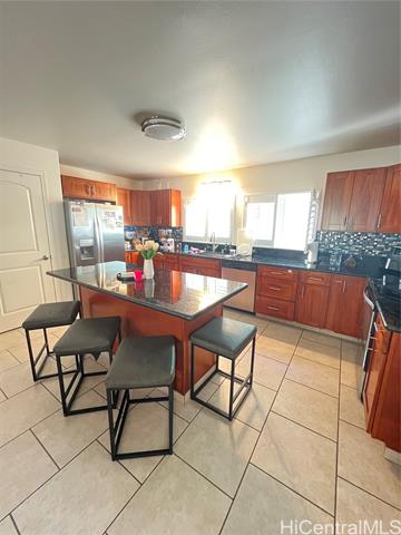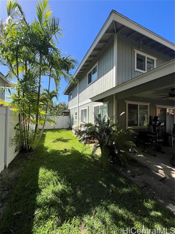 - Welcome to refined island living in Makaha Oceanview Estates. This stunning 3-bedroom, 2.5-bath single-family residence is thoughtfully designed with an open-concept living space that flows effortlessly for entertaining and everyday comfort. The home opens to a covered lanai overlooking a lush, fully fenced yard—your own private retreat framed by beautifully landscaped greenery. Downstairs has ceramic tile with a kitchen that boasts granite counter tops. The bedrooms are upstairs with carpeting, two full bathrooms, with the primary bedroom having a huge walk-in closet and primary bath. Set within a gated community and nestled against the majestic Makaha mountain range, this home offers peace of mind, privacy, and a strong sense of pride of ownership. Owned photovoltaic panels provide energy efficiency and long-term value. Just minutes from one of the most renowned surfing beaches in the world, as well as shopping and daily conveniences, this home is perfectly positioned to enjoy Makaha’s legendary sunsets and relaxed island lifestyle.