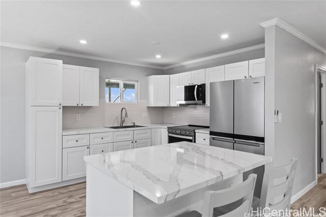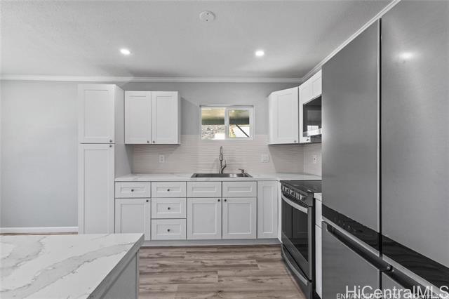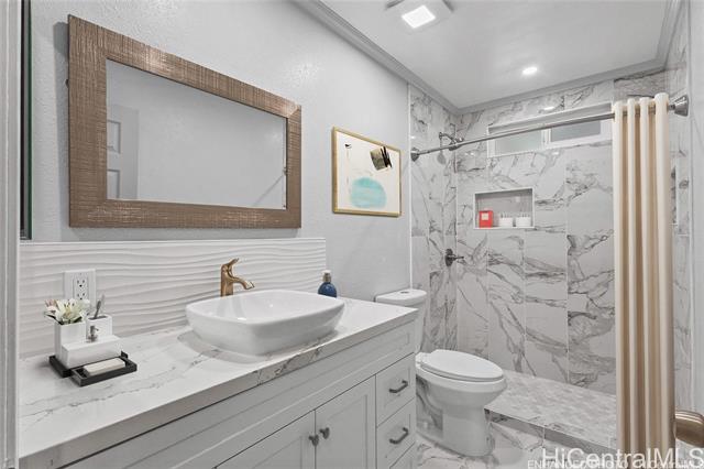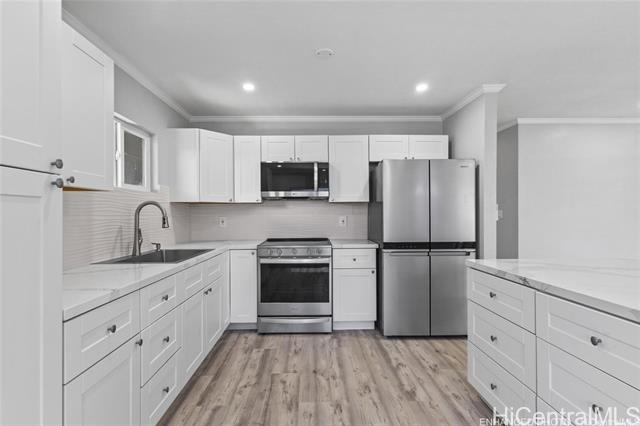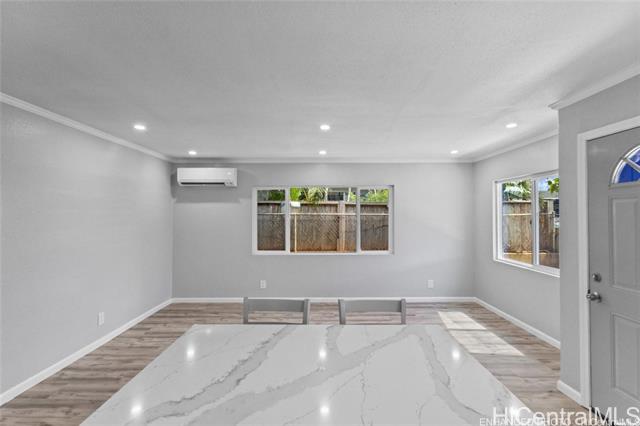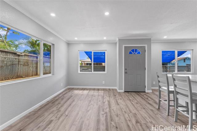 - Gorgeously Renovated Makaha Home Welcome to this beautifully renovated 3-bedroom, 1.5-bath detached single-family home on the desirable Manuku Street in Makaha. Recently updated from top to bottom, this home offers a bright and open living and dining area centered around a modern kitchen island. The kitchen has been upgraded with white quartz countertops, while luxury vinyl plank flooring runs throughout the main living areas, bedrooms, and half bath. The main bathroom showcases ceramic tile flooring, a new vanity and cabinetry, and a stunning floor-to-ceiling tiled shower with all-new fixtures. Both bathrooms and the kitchen have been refreshed with stylish, modern finishes. Additional highlights include recessed lighting, a newly installed split A/C system, fresh interior and exterior paint, and brand-new vinyl windows designed to keep the home cool and energy efficient. Located just minutes from world-famous Makaha Beach, Aki’s Beach, and the breathtaking Yokohama Bay, this home offers the perfect blend of comfort and island living. Come experience all that West Oahu has to offer—including the unforgettable sunsets it’s known for.