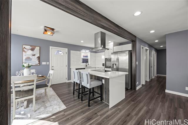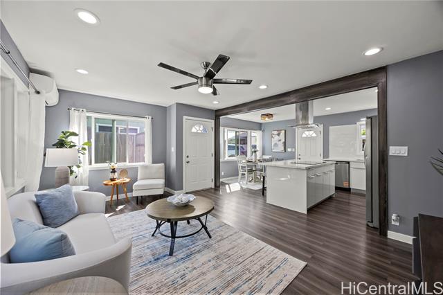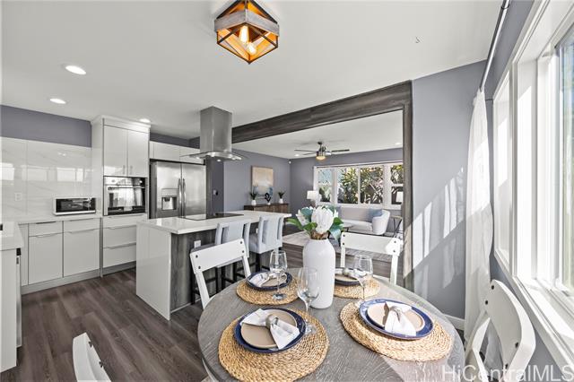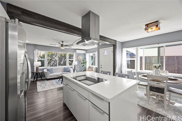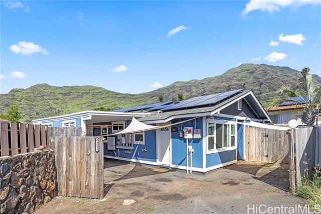- Welcome to this beautifully updated single-level 3 bedroom, 1.5 bath home nestled in a quiet Makaha neighborhood. Featuring a modern kitchen and timeless grey and white finishes throughout, this home offers both style and comfort. Enjoy the fully fenced yard with thoughtfully designed outdoor living areas - perfect for entertaining or relaxing under the Hawaiian sun. Equipped with 18 photovoltaic leased panels and a backup battery, the home includes a transferrable 25-year Sunrun loan for energy efficiency and savings. Conveniently located near schools, parks, beaches and shopping, this move-in ready gem offers the best of island living.