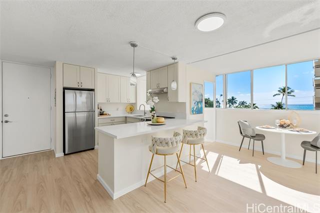 - RARE GOLD COAST OPPORTUNITY! Welcome to 3056 Kalakaua, a timeless boutique building along Honolulu's iconic Gold Coast with only two residences per floor and a pet-friendly community. This newly remodeled (2025) 2-bed, 2-bath residence offers breathtaking coastal views, rolling surf, and expansive blue skies. Wake up to Diamond Head views and fall asleep to the sound of the ocean just beyond your windows. Designed for effortless island living with modern finishes, wraparound covered lanais, in-unit laundry, extra storage, a private trash chute, and assigned parking. Just outside your door, enjoy morning swims, surfing at Tonggs, sunset walks by Diamond Head, and Waikiki's renowned dining and entertainment. A truly special offering on the Gold Coast, where every day feels like a getaway.