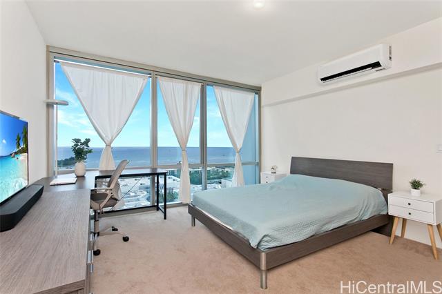 - The Central Ala Moana, the name says it all. This building is centrally located at the world-famous Ala Moana Shopping center. Lots to explore and experience. This rare highly sought after three-bedroom, two baths, with two parking, corner unit with a beautiful breathtaking unobstructed ocean view from the living room and the main bedroom. The stunning turquois view will take away the day's stresses and leave you relaxed each time you look out the windows. From the living room lanai, you can feel the ocean breezes as you sit to enjoy the Hawaiian sun. This home features a primary bedroom en-suite with a walk-in closet. The layout and flow of the unit is efficiently designed with lots of cabinet space. Split ac units in each room, stainless kitchen appliances, stacked washer and dryer. Luxury vinyl flooring in living area, carpet in the bedrooms and tile flooring in the bathrooms. Lots of resort like amenities for you to enjoy such as pool, jacuzzi, BBQ areas, party rooms, theaters, fitness room, playground, and even a dog park, guest parking and more. Take this opportunity to own a piece of paradise.