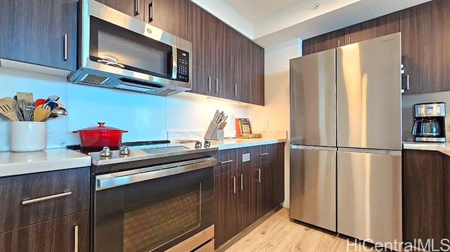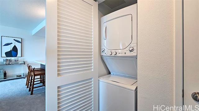 - Discover elevated urban living in of the newest buildings in Kaka'ako neighborhood. This 2-bedroom, 2-full bathroom shows off Diamond Head and stunning ocean views. This is an open-concept layout filled with natural light, complemented by the carpeting, white walls, and modern layout of the kitchen. An in-unit washer/dryer adds everyday convenience with the lifestyle that Kaka'ako offers. Additional perks include 2 secured and assigned parking spaces - stalls were designed with conduit to the building electric room convenient for EV owners (120V), LOCATED ON THE 2ND FLOOR OF GARAGE (first floor off the entry ramp), car wash area, security, multiple amenities (party room, yoga studio, bbq deck). Along with the water heater, and stainless steel appliances in the kitchen only being a couple years old, the HVAC unit in the living area has been upgraded with a larger pump. **AT SELLER'S COST THE HVAC UNITS IN THE TWO BEDROOMS WILL ALSO BE UPGRADED BEFORE CLOSING.