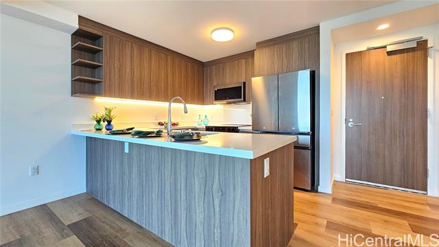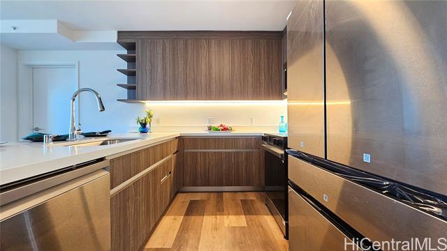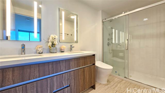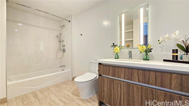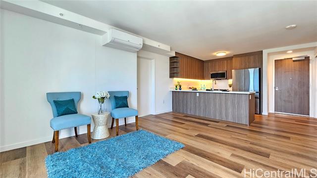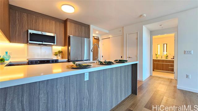 - Centrally located brand new bldg. Brand new unit-never lived in Rycroft Tower w/ Beautiful panoramic vws of ocean, Mountain & city. Desirable open floor plan. Bedrooms are separated by living room. Spacious open kitchen w/ quartz counter tops & stainless steel appliances. Luxury vinyl plank flooring. Primary bdrm w/ walk in closet. Upgraded Toto toilet in primary bathroom. Split AC in every room, Floor to ceiling windows to enjoy beautiful vws. Spacious lanai overlooking the city, ocean & Mountain. Installed window shades, Expansive rec deck offers a variety of amenities to enjoy. Infinity Pool & spa, sauna, BBQ cabanas, Outdoor lounging areas, Fitness, Yoga studio, movie theater, co-working spaces, dog run & landscaped gardens. Pet-friendly. 2 covered side by side pkg stalls with 24/7 security and many guest pkg. Midtown Eats opened at ground floor for you to enjoy variety foods. Ala Moana beach park, Shopping Center, restaurants, entertainment, transit, and parks are near by for you to enjoy. Great living at conveniently located New building.