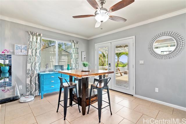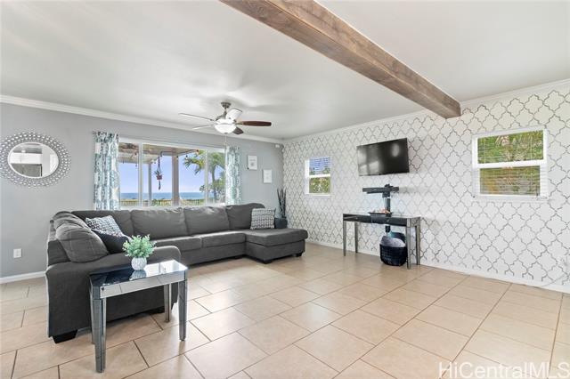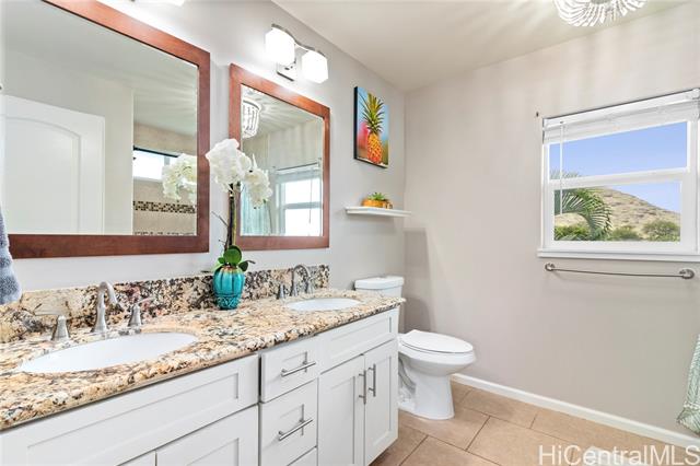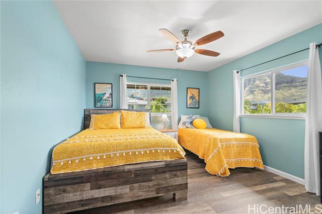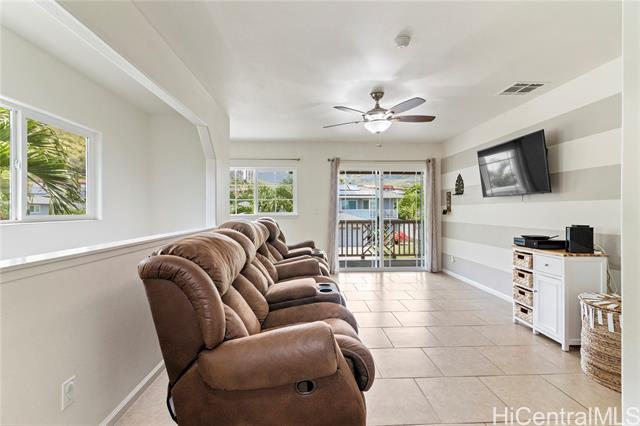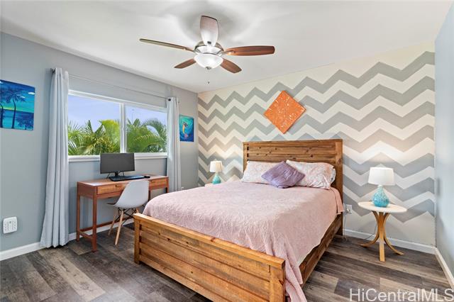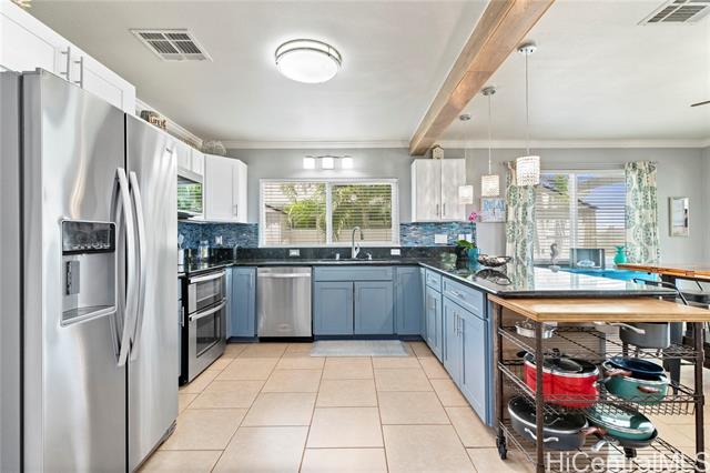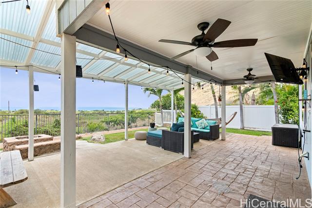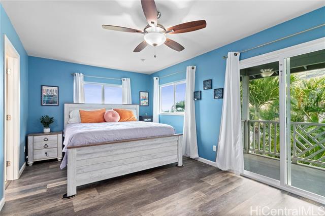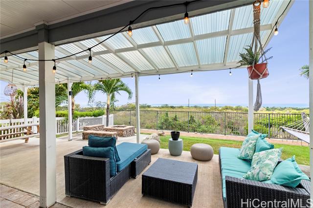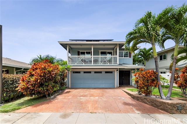 - Step inside and be instantly captivated by sweeping ocean views that greet you the moment you enter—this home is pure island luxury. Designed to maximize light, views, and flow, the open-concept main level creates a seamless connection between indoor comfort and outdoor beauty. The home features tile flooring downstairs, luxury vinyl plank upstairs, stainless steel appliances, and granite countertops. Thoughtful builder upgrades include a private office on the main level and a flexible fourth bedroom currently styled as a second living lounge, easily converted back into a bedroom. Upstairs, the primary suite offers its own lanai overlooking Makaha Valley and the Pacific—perfect for sunrise coffee or sunset unwinding. A second upstairs lanai faces the mountains, where seasonal waterfalls appear after rainfall. Entertain effortlessly from your extended backyard lanai, ideal for gatherings or quiet evenings under the sky. This home also features 42 leased solar panels with net metering, with an option to purchase at closing. Located in a quiet, gated community with internet/cable included through the HOA.. Includes a 2-car garage plus 2 additional parking spaces.
