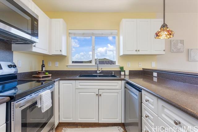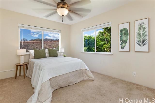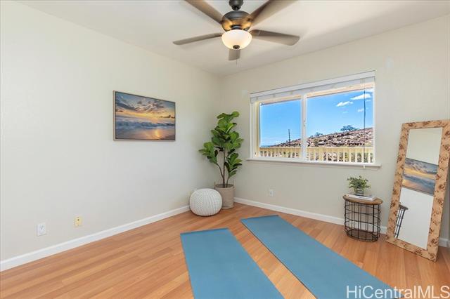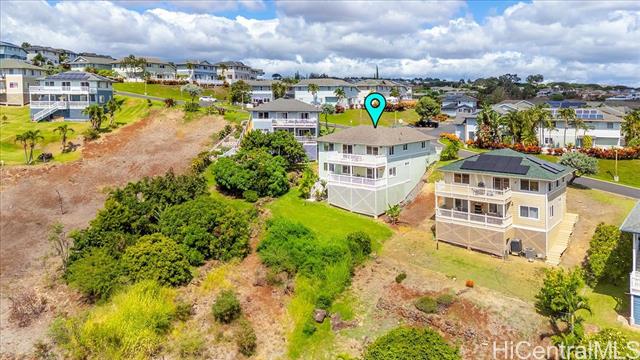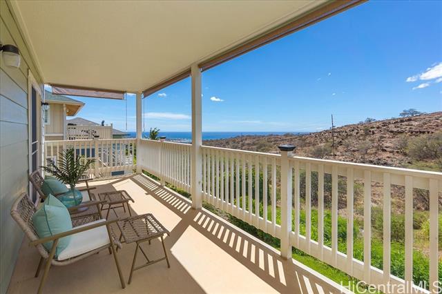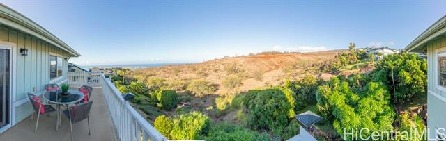 - Discover an exceptional opportunity with this expansive perimeter lot nestled within the gated community of Seascape at Makakilo. This spacious 3-bedroom, 2.5-bathroom detached home features one of the largest floor plans available. Enjoy breathtaking westward views of sunsets, coastline, and vibrant city lights against a backdrop of majestic mountains. The generous open and covered lanai decks create the perfect setting for outdoor entertaining and relaxation. This home features quality upgrades, including a state-of-the-art central AC system with a four-zone configuration ($48k investment), upgraded patio railings, beautifully landscaped yard, and numerous other enhancements that elevate its appeal. Situated on the cooler side of Makakilo Heights, this residence offers the convenience of being close to Kapolei City, with easy access to a variety of dining options, shopping centers, the luxurious Ko Olina resort, freeway access, golf courses, and all the essential amenities that enhance city living. The maintenance fee of $580 covers water, sewer, and common area expenses—an incredible value for this expansive 10,395 sqft rim lot. This is a VA approved residential community.
