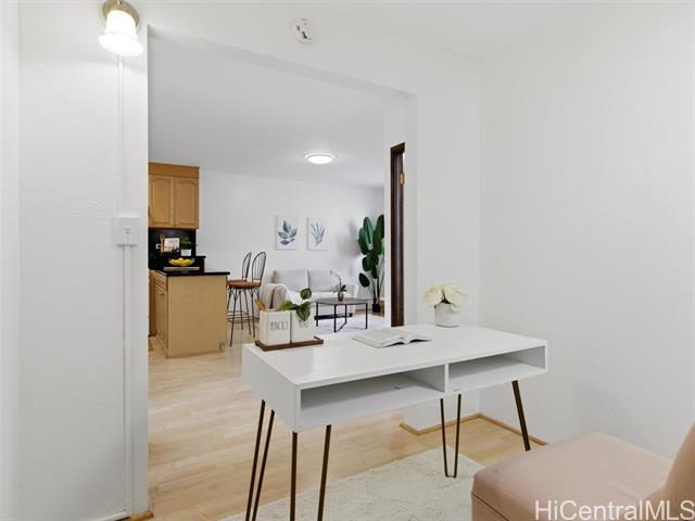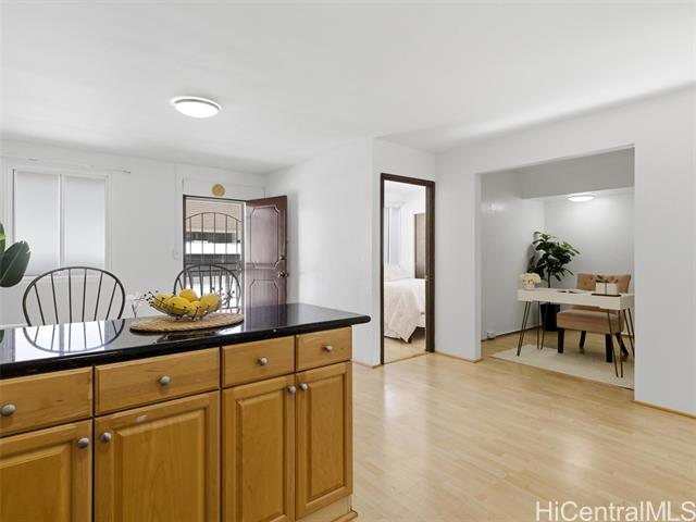 - Live where convenience meets character in the heart of Makiki. This bright 2-bedroom, 1-bath walk-up includes a bonus room that’s perfect for a home office, creative studio, or potential 3rd bedroom. Fresh paint and modern lighting give it that clean, move-in-ready vibe — but what really sets this unit apart is that it’s the ONLY unit in the building with both a front and back entrance AND its own private back lanai. That’s rare, and it means more privacy, airflow, and indoor-outdoor living. Pet-friendly (verify) and perfectly positioned just minutes from UH Manoa, Punahou, Downtown, Ala Moana, and Queen’s Medical Center. Close to markets, dining, the post office, and bus lines — and when you need to go, the freeway cutoff is literally a 1-minute drive, making island commuting effortless. This is one of those homes that gives you location, layout, and lifestyle all in one!