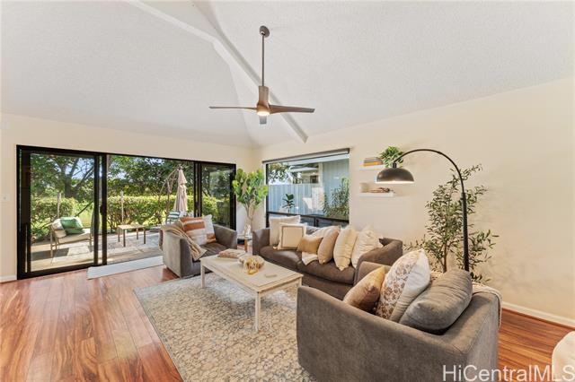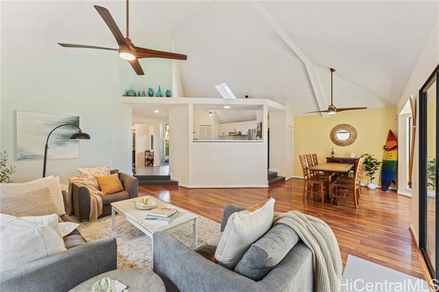 - Golf course frontage with ocean views in the heart of Laulima. This scenic drive home is a daily reminder of why you live in Hawai'i. Bright and airy, the residence offers three bedrooms and two baths on the FIRST floor highlighted by soaring vaulted ceilings and a large upstairs loft, ideal for a home office, media room, play space, or 4th bedroom space. Step outside to the open patio and enjoy direct views of the Hawai'i Kai Golf Course, with seasonal whale sightings visible in the distance. The primary suite features a generous walk-in closet, providing comfort and functionality. Ideally located just minutes from sandy beaches, scenic hiking trails, and the conveniences of Hawai'i Kai shopping, this is a rare opportunity to own a truly special piece of island living.