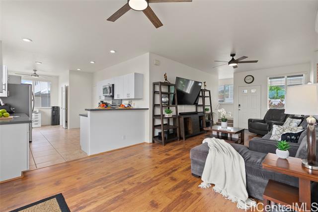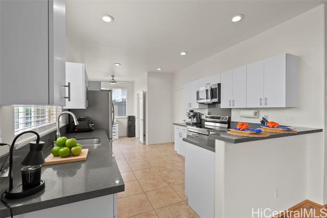 - Perched in Makakilo w/DIAMOND & OCEAN VIEWS from every room & deck, this METICULOUSLY cared for 3BD/2.5BA home SHINES w/COOL BREEZES & recent upgrades: SOLAR water heater, REFRIG, MICROWAVE, OVEN, DISHWASHER, QUARTZ counters, REFACED kitchen cabinets, CARPET, ceiling FANS, light FIXTURES & FAUCETS to name a few! Relax in the REGLAZED primary BATHTUB, entertain on the SPACIOUS DECK, appreciate SPLIT AC, PLANTATION SHUTTERS, lush landscaping, large EXECUTIVE closet & FRESH interior paint. A true island retreat!