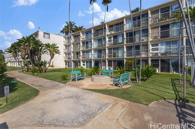 - PRIME OCEANFRONT LIVING! Fee simple, ground-floor one-bedroom, one-bath condo in the desirable A building, offering easy access to the pool and beautifully maintained common areas. This furnished unit features ceramic tile flooring, covered parking, and resort-style amenities including two swimming pools, BBQ areas, sauna, fitness room, on-site convenience store, and 24-hour security. Enjoy ocean breezes, sunset views, and a short distance to some of the best beaches on the island. Conveniently located near bus lines and a short drive to Ko Olina Resort and Kapolei shopping, dining, and entertainment- all offered at an affordable $185,000.