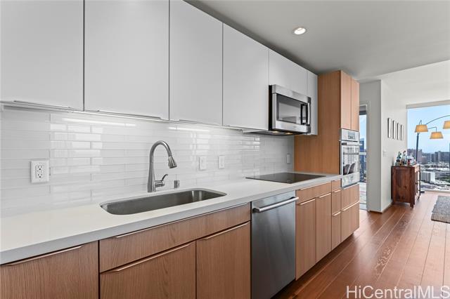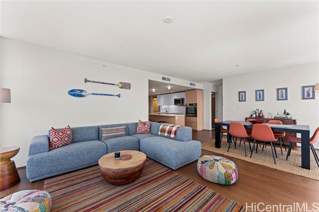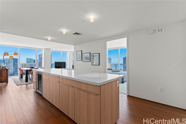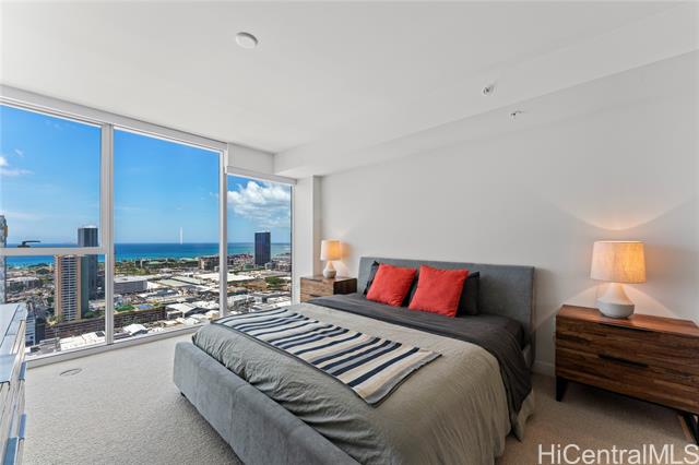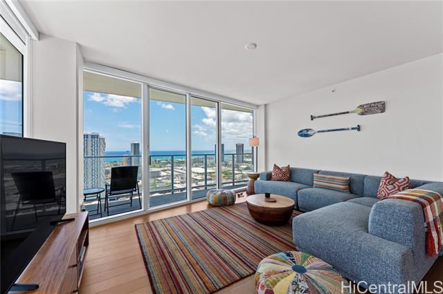 - The Rarest “05” Stack — A Designer’s Dream in the Sky! Rarely available and always in demand, the high-floor “05” stack is the crown jewel of Symphony Honolulu, the most coveted southeast corner, offering breathtaking views of the Pacific, Diamond Head, and Honolulu’s skyline. Spanning 1,500+ sq. ft., this corner three-bedroom is a masterclass in modern design and effortless luxury. Lightly used and meticulously maintained by its original owner, it’s offered fully furnished with curated, high-end pieces for a seamless move-in experience. The Studio Becker kitchen features Bosch appliances, quartz countertops, a built-in wine fridge, and integrated coffee system, blending elegance and performance. The primary suite evokes a private retreat with custom millwork, spa-inspired shower, and walk-in closet. A full laundry room completes this highly functional layout. Enjoy resort-style amenities: heated infinity pool, cabanas, BBQ stations, fitness and yoga studios, theater, spa room, guest suites, and dog park: all within one of Honolulu’s most striking, pet-friendly towers. A rare fusion of design, technology, and tranquility — the “05” stack is modern living at its finest.