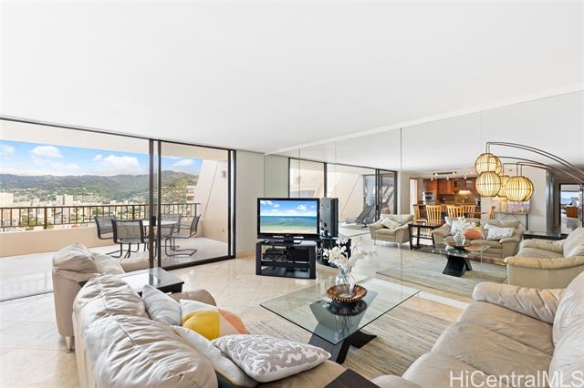 - Rarely available, this stunning penthouse unit at Discovery Bay offers breathtaking views and an expansive layout. PH 14 features 2 spacious bedrooms and 2 full baths, designed for comfort and style. The generous lanai is perfect for entertaining, while the open-concept kitchen seamlessly flows into the living area, creating an inviting and airy atmosphere. Ideally located in the heart of Honolulu, you will have easy access to the city’s best dining, shopping, and entertainment. Plus, with convenient commercial spaces just downstairs and a wealth of premium building amenities, this is island living at its finest! *96.893% FS owned, remaining 3.107% LH interest to be purchased in future.