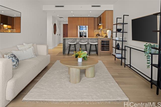 - New Turn-Key Listing at Victoria Place, Ward Village. Beautiful, fully-furnished 1-bedroom, 1-bath residence with one reserved parking stall, overlooking the lush amenity deck. Located in Victoria Place, the newest luxury building developed by Howard Hughes Corporation within the Ward Village master-planned community. The residence features custom cabinetry by Studio Becker, a Sub-Zero refrigerator, and Wolf gas range, oven, and microwave. This 350-unit front-row development was designed by Solomon Cordwell Buenz and offers resort-style amenities, including lap and lounge pools with ocean views, a wine cave, spa, hot and cold plunge pools, fitness center, movie theater, and 24/7 concierge and valet services.