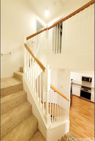 - Experience peaceful golf course living in the highly desirable Kalamaku’u community. This spacious townhome offers the privacy and comfort of a single-family residence, beginning with your own gated courtyard entry that creates a warm and inviting welcome. Upstairs, the generous primary suite captures stunning East-facing sunrise views over the golf course, the perfect way to start your day. A second bedroom overlooks the open atrium-style foyer below, enhancing the home’s natural light and architectural appeal. On the main level, a third bedroom and full bath with shower provides flexibility for guests or multigenerational living. French doors open directly to the courtyard, seamlessly blending indoor and outdoor spaces. Additional highlights include central AC, lanai, soaking tub, walk-in closet, and a dedicated laundry room. The attached enclosed garage plus a second nearby parking stall add everyday convenience. Pet-friendly and part of a private 81-residence community with only eight featuring this sought-after floor plan, this is a rare opportunity close to beaches, hiking, golf, shopping, dining, and more. Special Assessment loan of $143 per month will mature on 10/12/31.